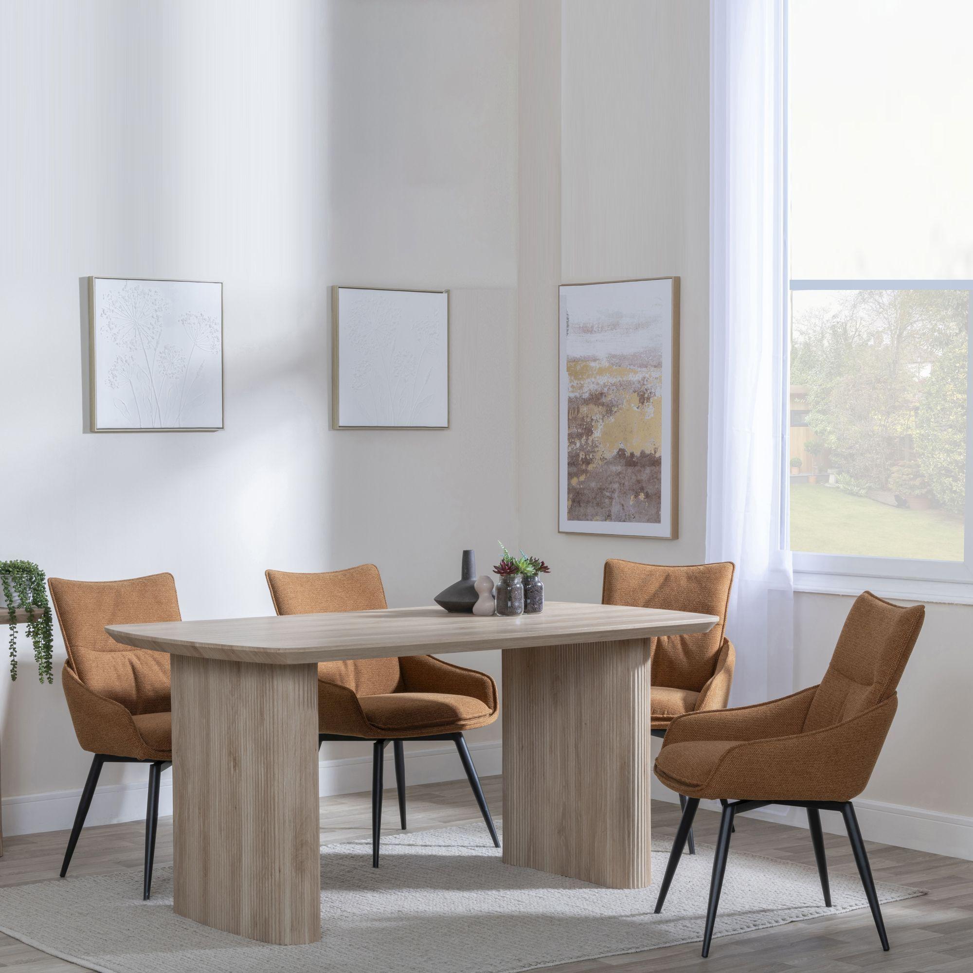 Bern Fluted Oak Effect Dining Set - Ace Orange Fabric Swivel Dining Chair
