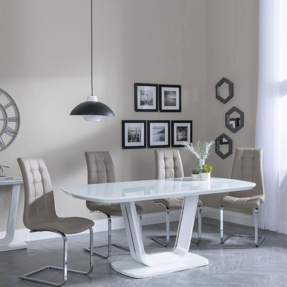 Item Code: ELLE DT-1932/Y-092-3-BG MDF, all in white High Gloss finish. Top and base arc-edge as per the pic and sticked with 5mm glass. Middle support decorated with stainless stripe.