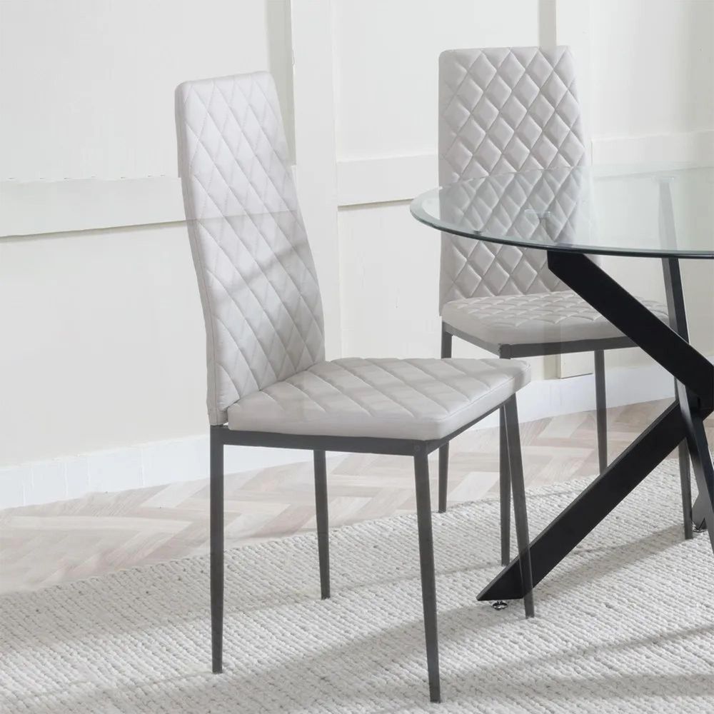 Maldon Black Ceramic Dining Set - Metro Beige Leather Dining Chair with Black Legs