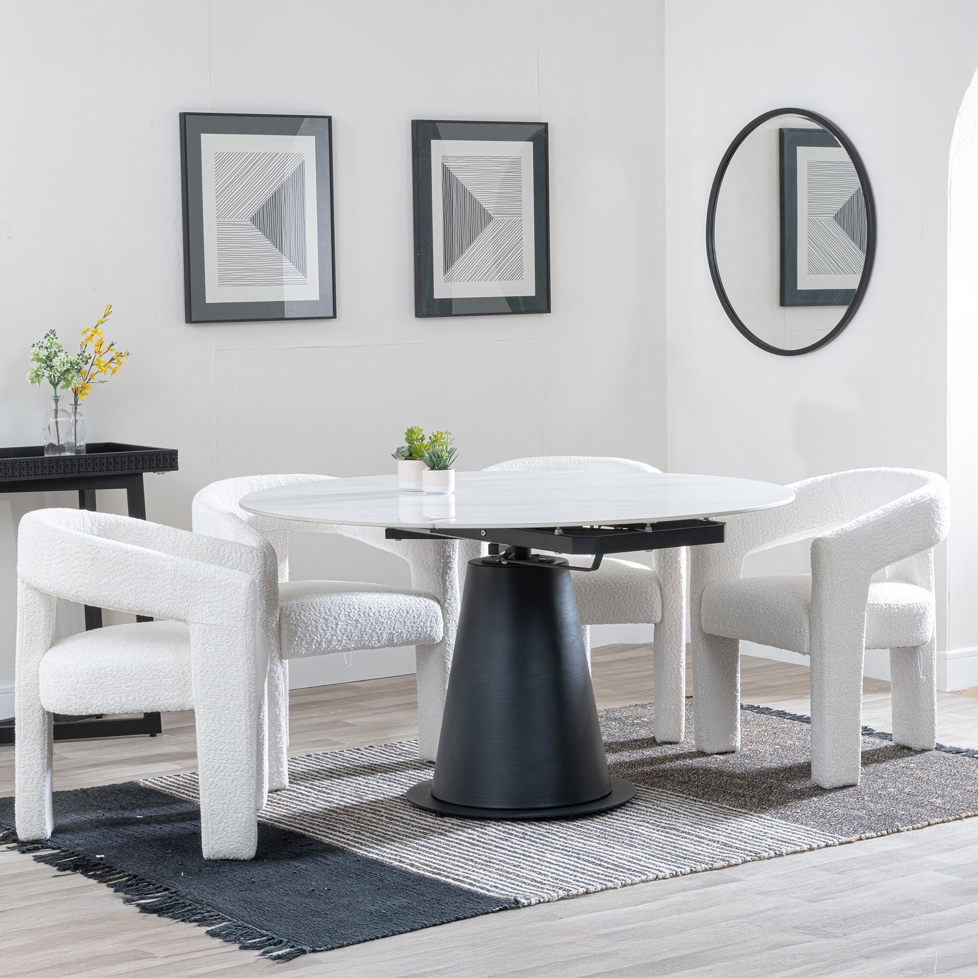 take a look at the Novara Matt Grey Ceramic Top Round Dining Table from Humz, reflecting elegance and simplicity. crafted with a smooth, matt Grey Ceramic top, 12 mm thick, it combines durability with a sleek finish. The 130 cm diameter will easily fit up to 4 people. It has a very clean and modern look with its round design and fixed top, hence it fits in any dining space. It features black spider legs that strikingly contrast with the Grey top, making this table sleek and modern. It is the ideal round dining table with Dimensions are 130cm x 130cm x 75cm; it's compact but enough to fit your family meals and small gatherings. This flat-packed table will be easy to assemble, thus not only beautiful but also very practical. The Novara table mixes classic style and modern functionality for everyday use and special occasions.