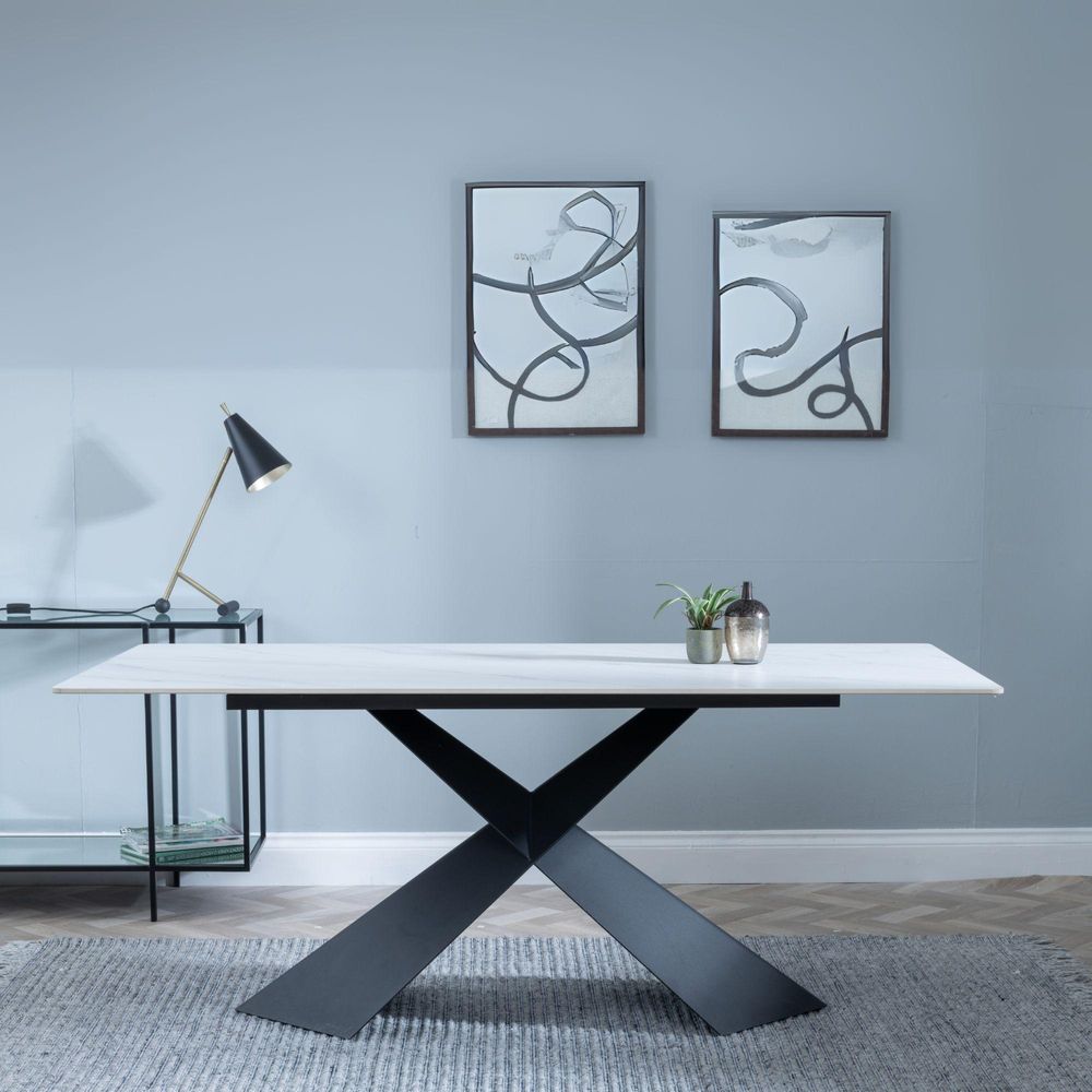 Merlin White Ceramic Dining Set - Boden Yellow Fabric Swivel Dining Chair