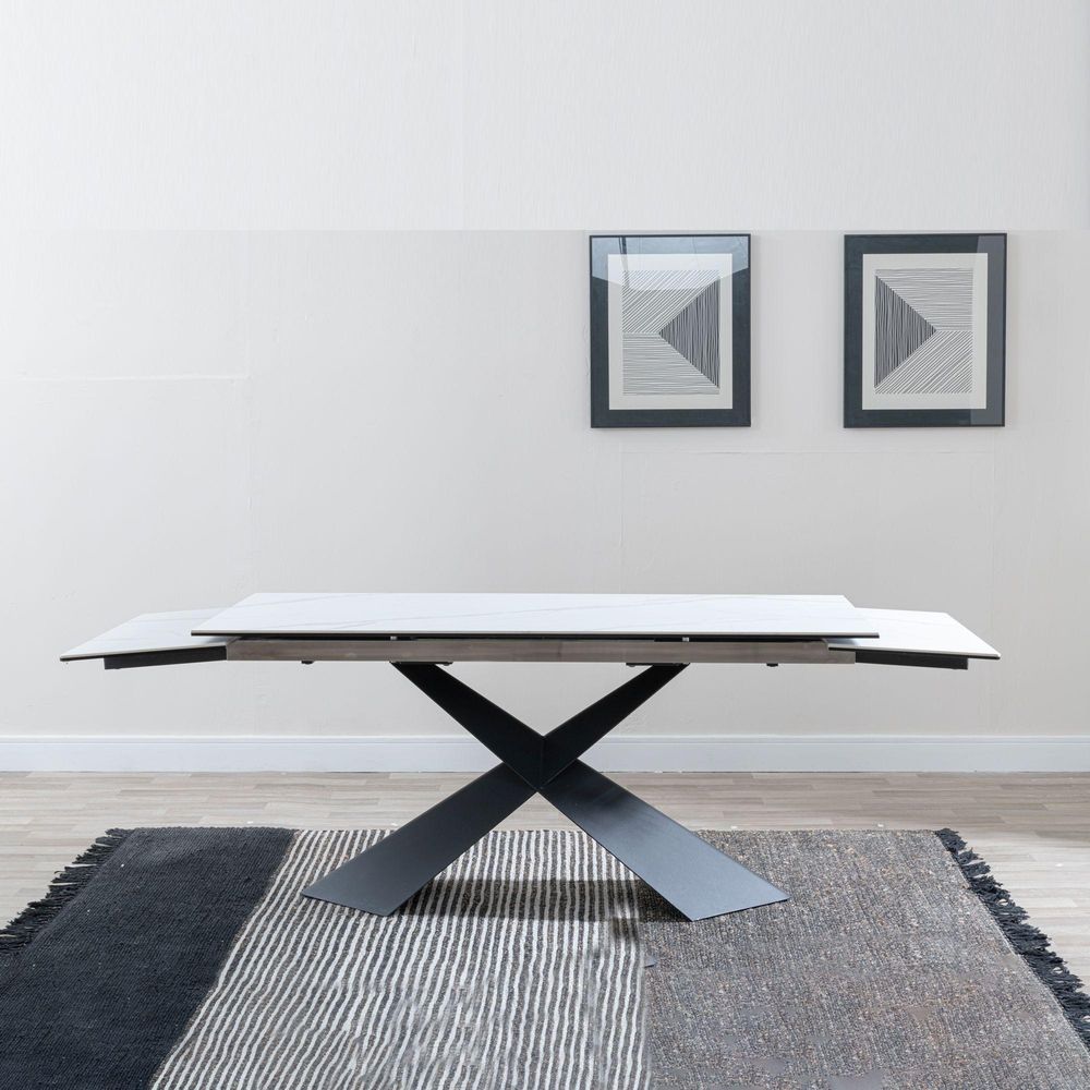 Hayden White Ceramic Extending Dining Set - Ace Beige Fabric Swivel Dining Chair