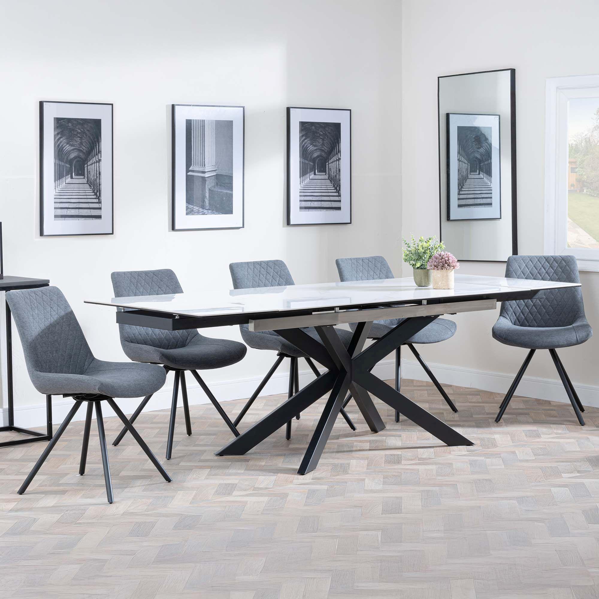 Sutton White Ceramic Extending Dining Set - Boden Grey Fabric Swivel Dining Chair