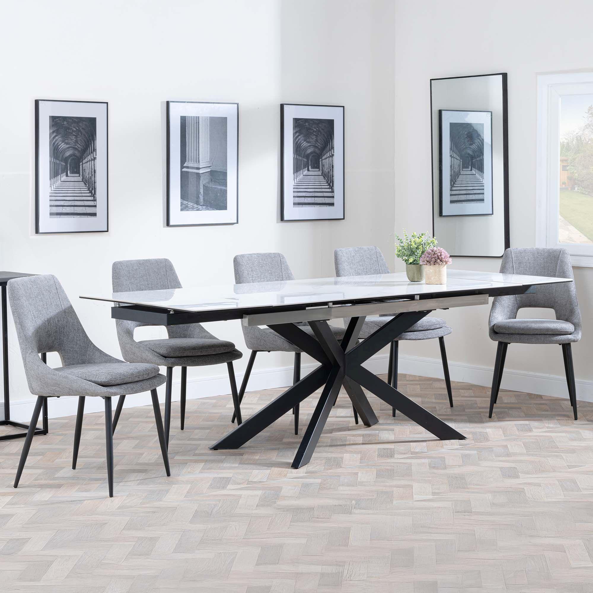 Sutton White Ceramic Extending Dining Set - Peyton Grey Fabric Dining Chair