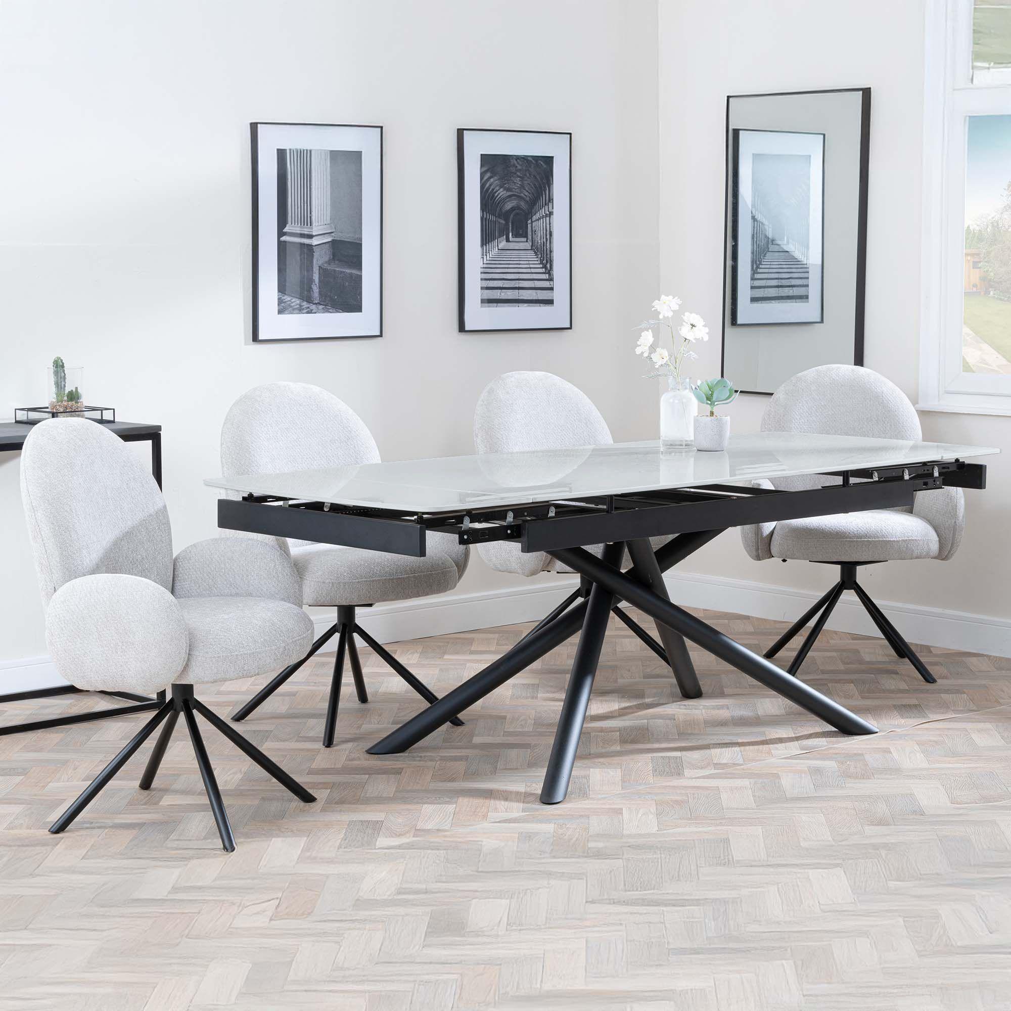 Apollo Grey Ceramic Extending Dining Set - Theo Grey Fabric Swivel Dining Chair