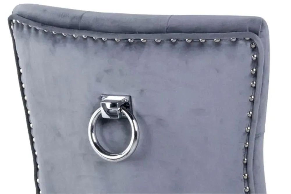 Turin Grey Marble Square Dining Set - Knocker Back Grey Velvet Fabric Dining Chair with Black Wooden Legs