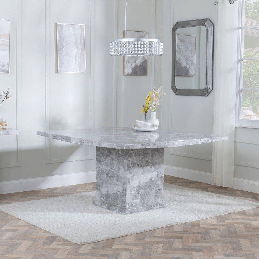 Item Code: HT46-BG/Y-092-3-BG The Turin collection is sleek and modern, and it will make a statement in your dining room. This Turin table is an elegant setting for any occasion. This table is both stylish and durable, with a strong natural marble pattern table top with a high gloss finish that is easily wiped clean and maintained. The table top is supported by a wide, sturdy pedestal, which completes the bold modern look. Marble Tables, Ceramic Tables and Extending Glass Tables will be delivered to the ground floor only with free assembly on these tables.Please Note: Ground floor only deliveries will be delivered to the street-level ground floor of the property only with no steps leading up to the property. Please contact us before placing an order for further information.Free White Glove Delivery On Dining Tables Only