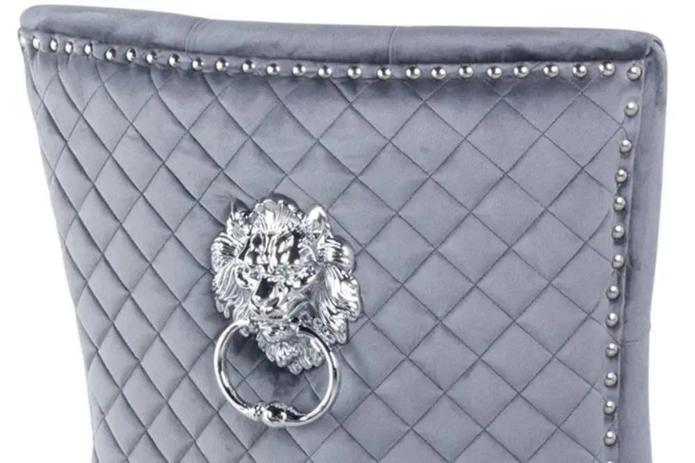 Venice Cream Marble Dining Set - Lion Knocker Back Grey Velvet Fabric Dining Chair with Black Wooden Legs