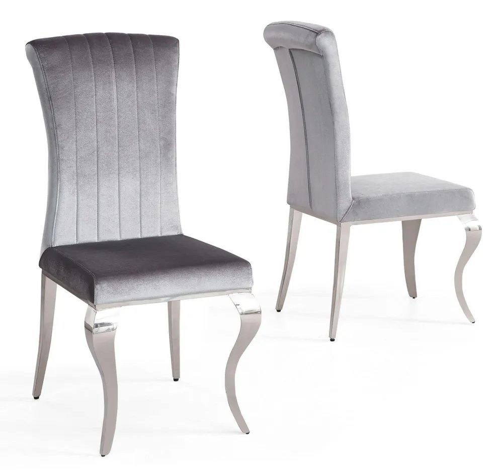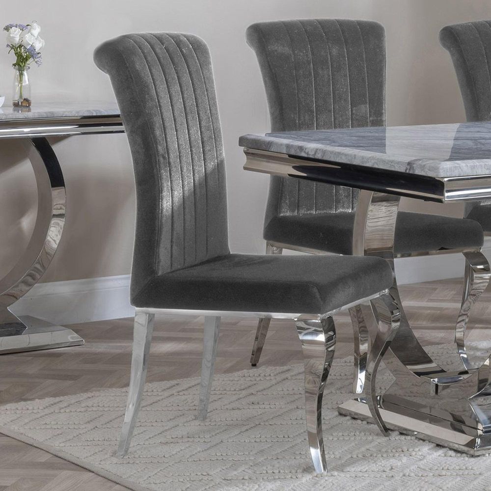 Louis 4 Seater Grey Marble and Chrome Square Dining Set - 4 Grey Velvet Fabric Dining Chair