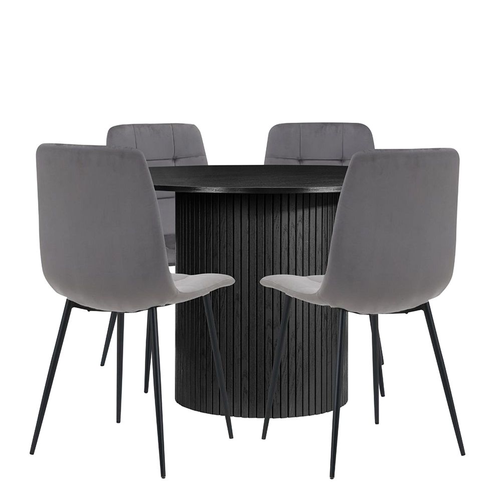 Axel Round Dining Set - 4 Seater - 120cm - Black Fluted - with 4 Chairs