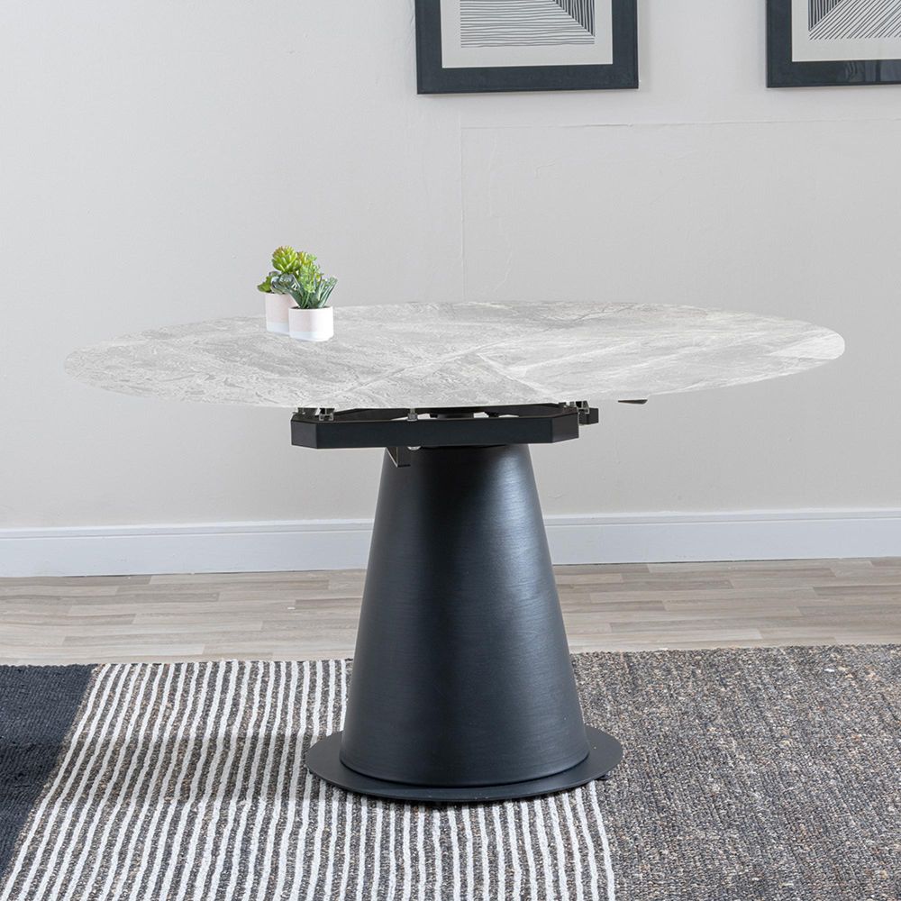 Carrara Grey Ceramic 4 Seater Round Extending Dining Set - 4 Corona Light Grey Fabric Dining Chair