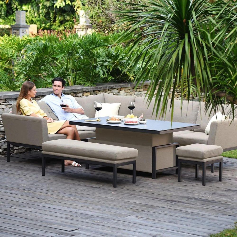 Clearance - Maze Pulse Oatmeal 8 Seater Rising Table Corner Garden Sofa Dining Set with Bench Footstool - FSS16379
