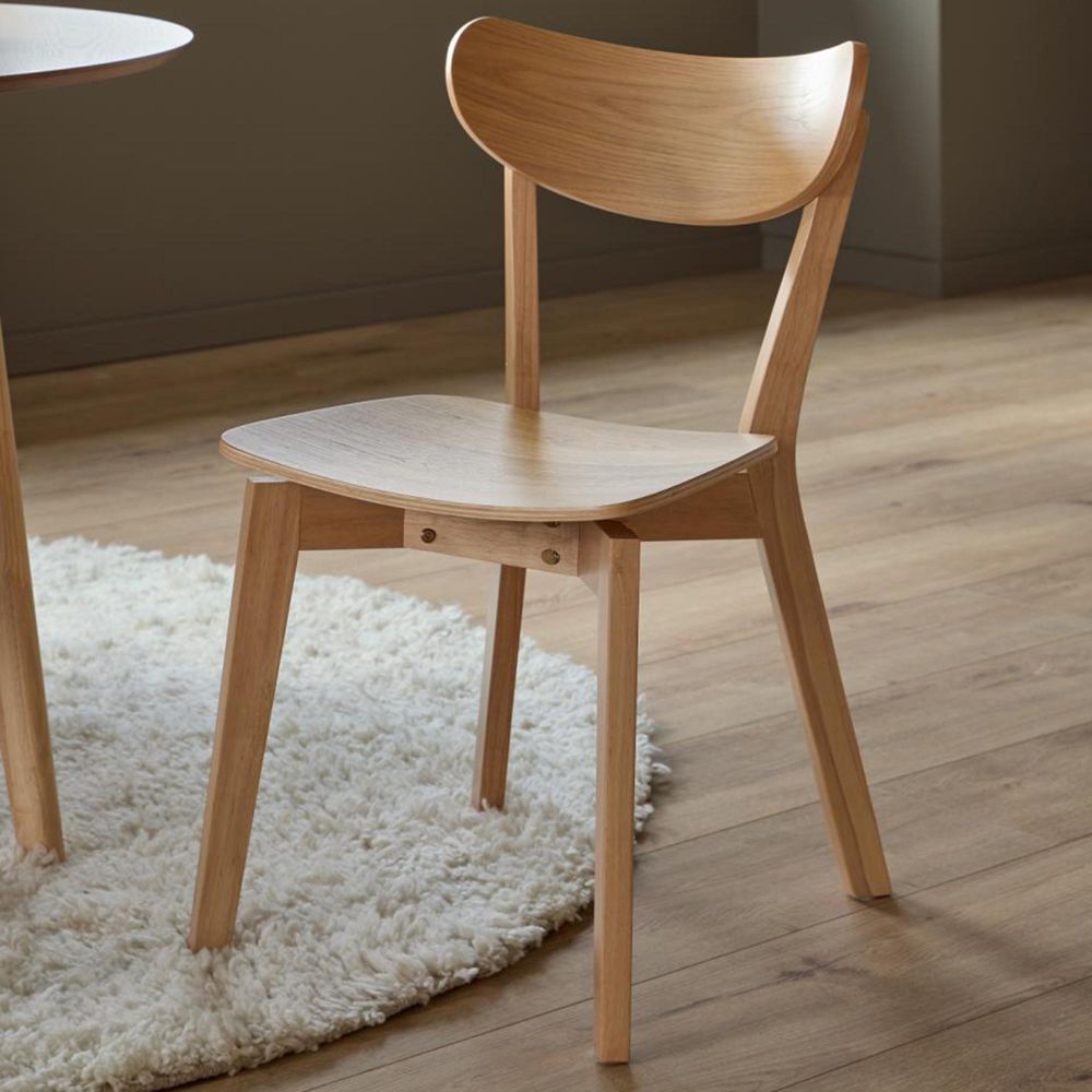 Item Code: H000024500 Roxby dining table set, top oak AC lacquered veneer, base matt oak stained AC lacquered rubberwood with table and 4 chairs. his Roxby dining set is shaped by a blend of retro and modern design aesthetics. Made in a natural oak look with a lacquered finish, the combination of oak veneer and oak-stained wooden legs creates a warm, elegant appeal perfect for any occasion in the dining room.Free Delivery