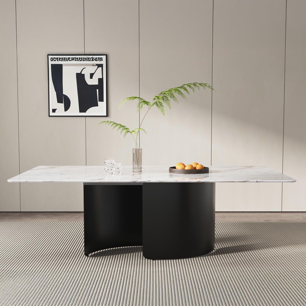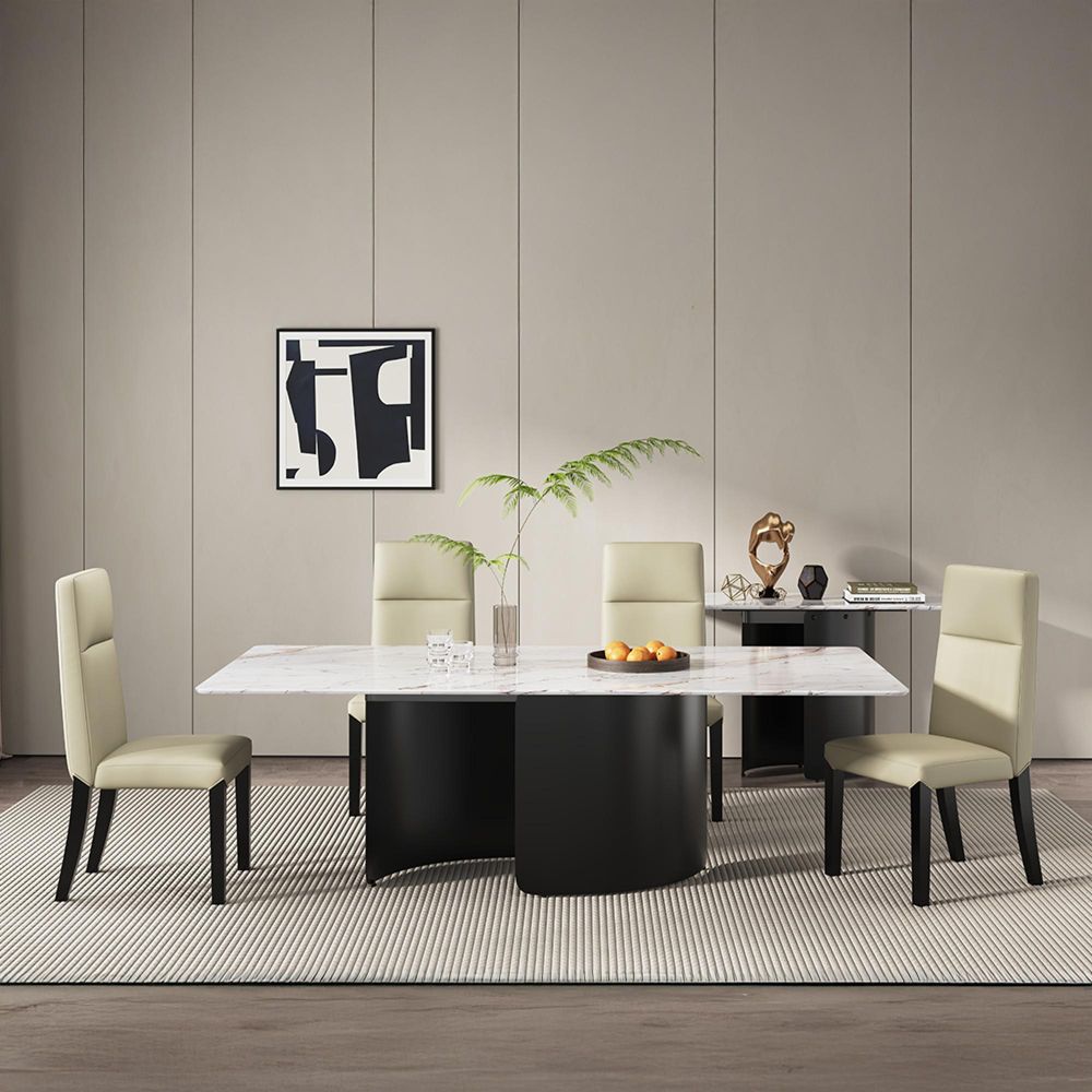 The Lorea White Marble Dining Set paired with Venezia Cream Leather High Back Dining Chairs brings together modern design and refined comfort, making it a striking centrepiece for any dining room. The crisp white marble tabletop creates a clean, minimalist look, while the bold black pedestal base adds depth and visual balance. This contrast gives the set a contemporary feel that suits both modern and elegant interiors.