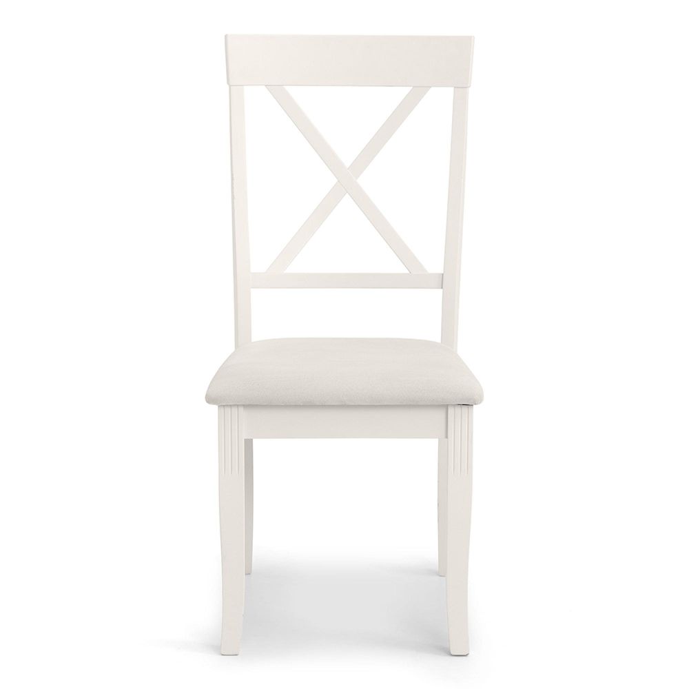 Item Code: DAV006/DAV002 Dining TableAn elegant circular dining table combining an oiled real oak veneer top with a beautifully designed pedestal base, perfectly finished in a subtle ivory lacquer to ensure a classic piece with timeless appeal.Dining ChairThe Davenport Dining Chairs is a Shaped, Cross Back Chair, in a Subtle Ivory Lacquered Finish and with a Faux Suede Upholstered Seatpad. Seat Height - 45cm.