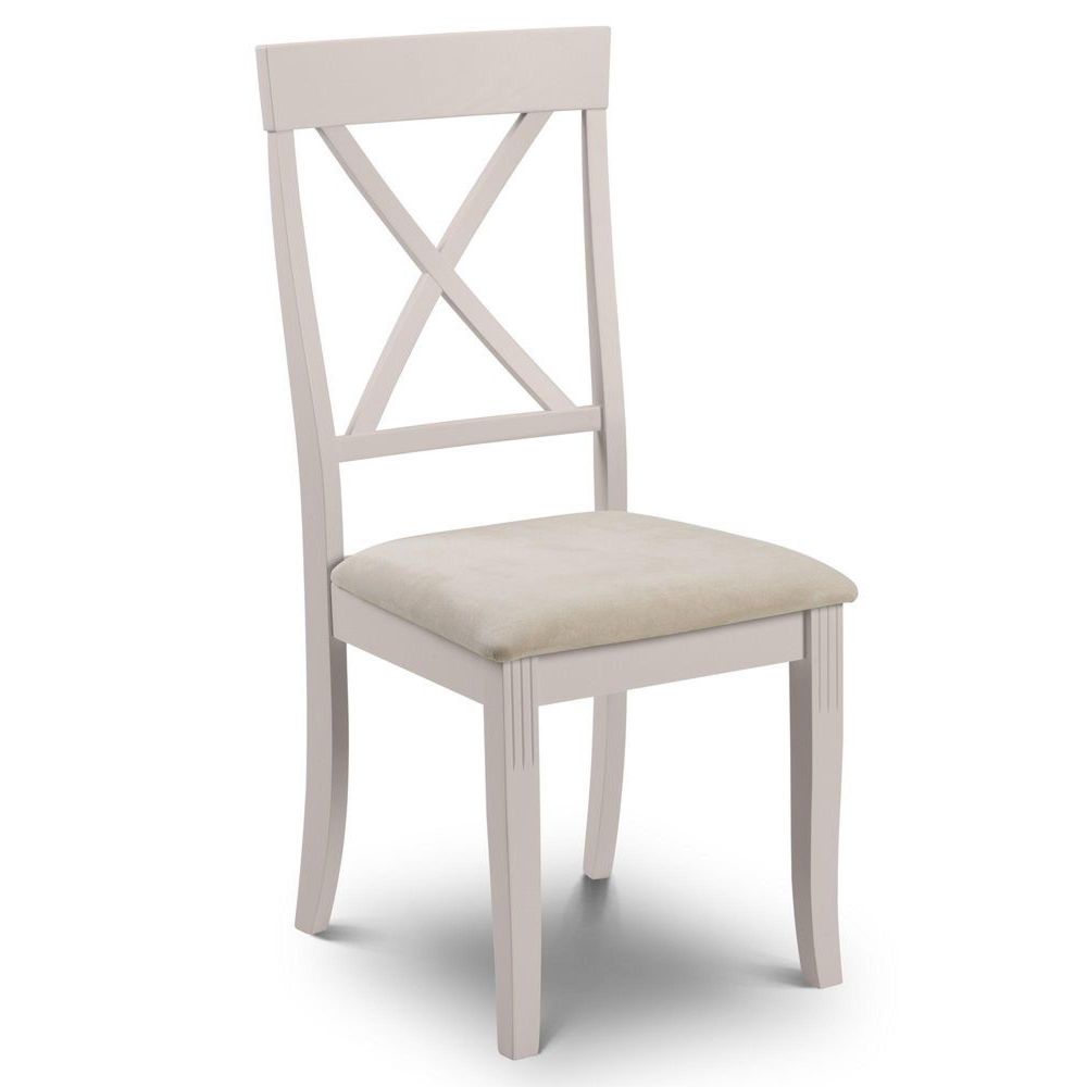Item Code: DAV001/DAV002 Dining TableA Very Stylish Dining Set with a Real Oiled Oak Veneered 25mm Top on an Ivory Lacquered Base.Dining ChairThe Davenport Dining Chairs is a Shaped, Cross Back Chair, in a Subtle Ivory Lacquered Finish and with a Faux Suede Upholstered Seatpad. Seat Height - 45cm.