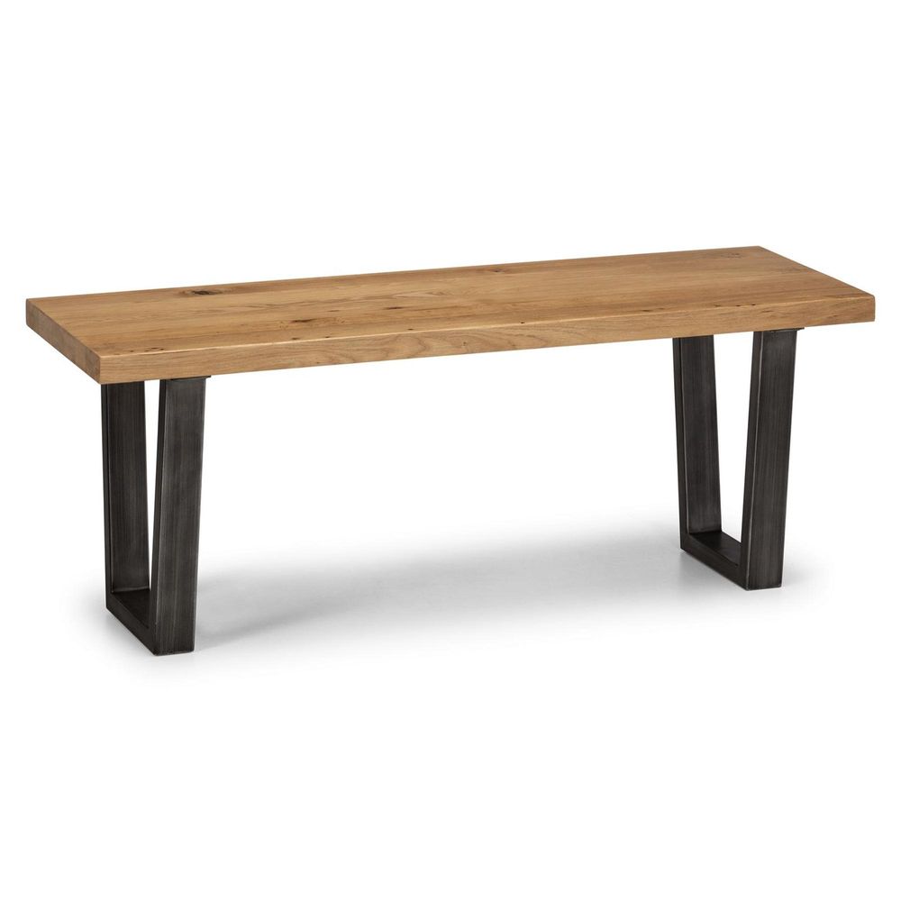 Item Code: BRO001/BRO002/BRO003 Dining TableThis dining table offers a rustic finish emphasising the stunning natural wood grain. The Brooklyn Dining Table offers a vintage edge featuring industrial trapeze style metal legs. This spacious table can seat up to 6 people, perfect for a wide range of modern decor. Part of the Julian Bowen Brooklyn Dining and Occasional Collection, also a great match with the Soho Dining Chairs.Dining ChairThe Brooklyn Dining Chair has an industrial, retro design in a vintage brown faux leather finish with a cantilever style gunmetal leg frame. Offering maximum comfort and style, this padded chair beautifully accompanies the Brooklyn Dining Table.BenchMade from solid oak, this bench offers a rustic finish emphasising the stunning natural wood grain. The Brooklyn Bench offers a vintage edge featuring industrial trapeze style metal legs. This spacious bench can seat up to 2 people, perfect for a wide range of modern decor. Part of the Julian Bowen Brooklyn Dining and Occasional Collection.