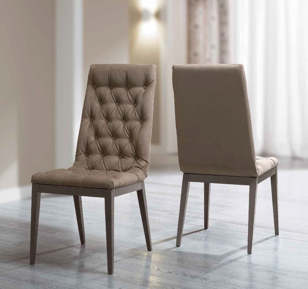 Item Code: 144TAV.04PL/144SED.03PLMS Dining TableTable base structure: 18mm thick wood particles panels veneered with semi-gloss silver birch melamine finish with MDF (Medium Density Fiberboard) chromed inserts. Solid fir wood frame with low friction ball-bearing hot dip galvanized steel sliding mechanism. Table top: ultralight 40mm virgin white poplar wood particles panel veneered with semi-gloss silver birch melamine finish (Camelgroup exclusive). 95 gloss polyester curtain coating with UV (Ultra Violet) drying process. Butterfly table extension folds away and is perfectly hidden in the base of the table.Dining ChairDehydrated and stabilized (12% residual humidity) solid beech wood frame. Double electrostatic automated acrylics base coating with 100 gloss polyester finish. Hot air tunnel drying.Back and seating panel: 12mm thick multilayer wood panel upholstered with DS35 density elastic polyurethane adding for comfort and durability. Upholstery: handmade capitonne with fire-retardant PVC based ecoleather (Made in Italy);.Steel Hardware and Wood Dowels: Solid beech wood dowels 10mm x 40mm. Carbonitrided and galvanized steel with zinc alloy patented joints guarantee certified strength and hold. Hinges are certified in compliance with DIN ISO 9001 quality standard. They are subject to static load test (positive opening capacity), wear/durability tests (100,000 cycles of opening and closing with the added load 2x20N), safety testing and salt water resistance and condensation testing.Other Characteristics: Ultralight virgin white poplar wood particles panel adhere to E1 low formaldehyde emission standard as per UNIEN120 directive.Care and Maintenance: Surfaces must be cleaned with soft cloth and neutral liquid detergent. Wash and dry carefully. Do not use powder or abrasive products. Do not use products containing alcohol or solvents. In order to avoid damages do not load weight on doors nor force over-opening or strain on hinges. Avoid prolonged direct exposure to sun light, this might cause discoloration which cannot be regarded as a defect. Do not place the furniture close to heating sources or in humid places for a long periods.This is a Made to Order itemAll Made to Order items are manufactured as per the order supplied by you.We are unable to accept cancellation or accept any extra cost that may incur due to wrong information provided by you at the time you placed the order.We will confirm all sizes/colours/finishes in written email (order confirmation) with you before going ahead with production of your order.