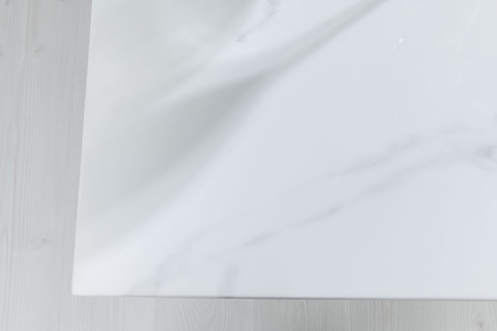 Item Code: HT46-WH/GS-897C-BK The Turin collection is sleek and modern, and it will make a statement in your dining room. This Turin table is an elegant setting for any occasion. This table is both stylish and durable, with a strong natural marble pattern table top with a high gloss finish that is easily wiped clean and maintained. The table top is supported by a wide, sturdy pedestal, which completes the bold modern look. Marble Tables, Ceramic Tables and Extending Glass Tables will be delivered to the ground floor only with free assembly on these tables.Please Note: Ground floor only deliveries will be delivered to the street-level ground floor of the property only with no steps leading up to the property. Please contact us before placing an order for further information.Free White Glove Delivery On Dining Tables Only
