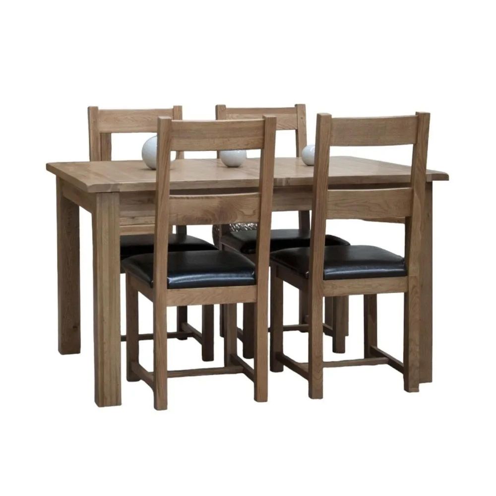 Bring timeless style and solid practicality to your dining space with the Rustic Oak Extending Dining Set with 4 Leather Seat Chairs. Handcrafted from 100% solid oak, this set is designed for homes that value real wood, reliable function, and enduring beauty.