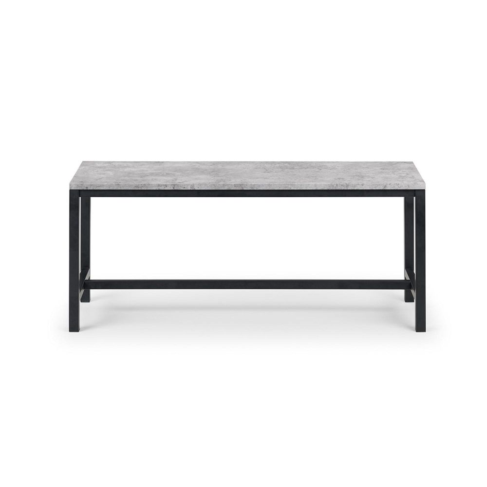Item Code: STA106/STA105/SOH001 Simplistic in style with a contemporary design, the Staten Dining Table will add a stunning industrial look to any living and dining area. Constructed from a black coated metal frame, complemented by a striking concrete effect tops, to create a very stylish, modern product. Featured with the Staten bench and 2 Soho dining chairs. This Retro Soho Dining Chair is finished in an antique black faux leather with a striking black metal frame, sure to compliment any contemporary decor.