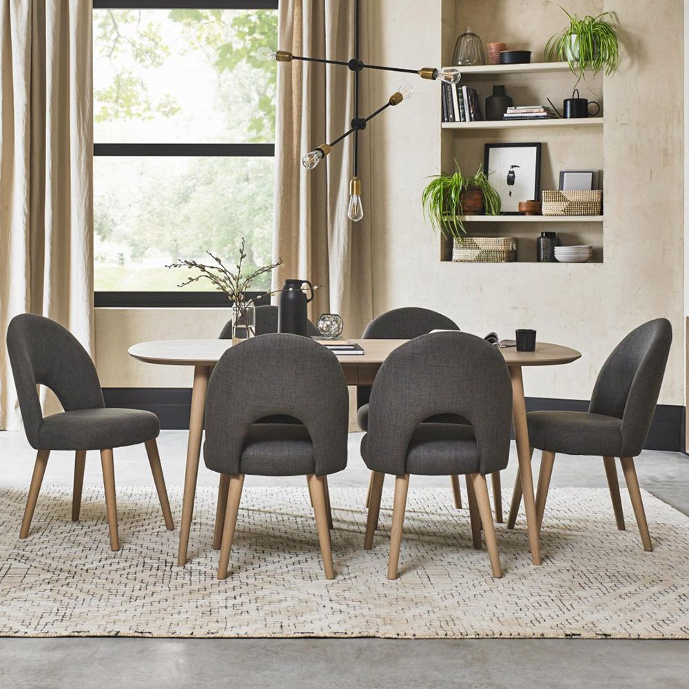 Dansk Scandi Oak Dining Table Set - 4 Seater - 4 Cold Steel Fabric Upholstered Chairs