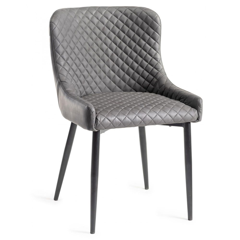 Turin Glass Dining Table Set - 6 Seater - 180cm - Light Oak Legs - 6 Cezanne Dark Grey Faux Leather Chairs - Black Legs