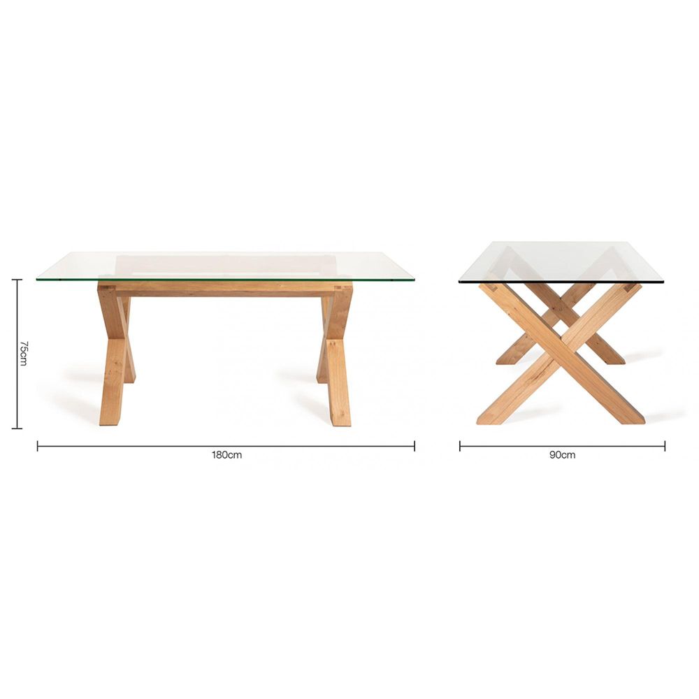 Turin Glass Dining Table Set - 6 Seater - 180cm - Light Oak Legs - 6 Cezanne Petrol Blue Velvet Chairs - Black Legs