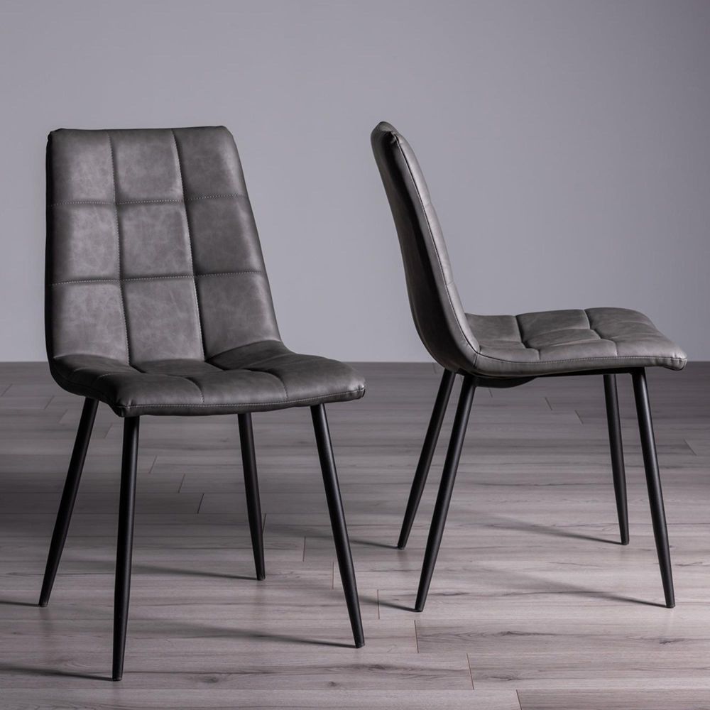 Ramsay Oak Dining Table Set - 6 Seater - 160cm - U Leg - 6 Mondrian Dark Grey Faux Leather Chairs