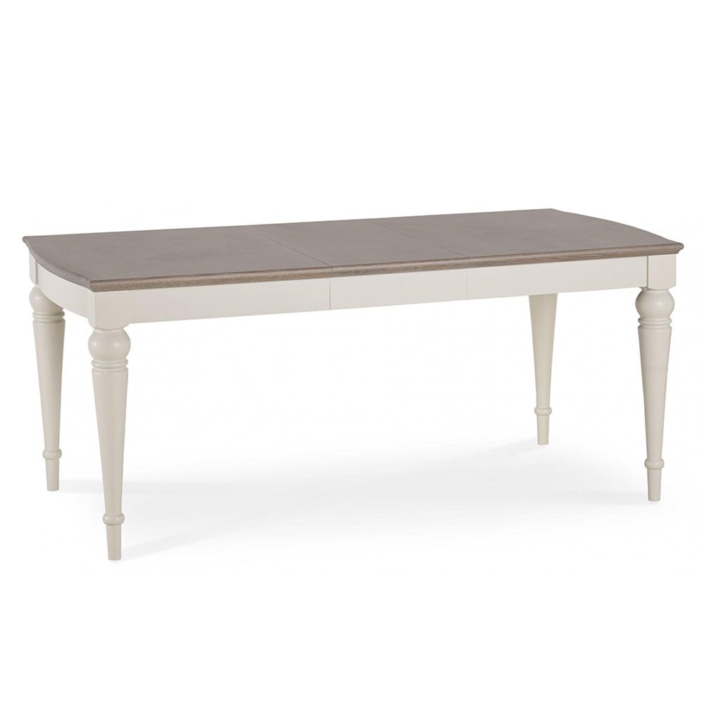 Montreux Extending Dining Table Set - 4-6 Seater - 140cm-180cm - 4 Upholstered Grey Bonded Leather Chairs - Grey Washed Oak & Soft Grey