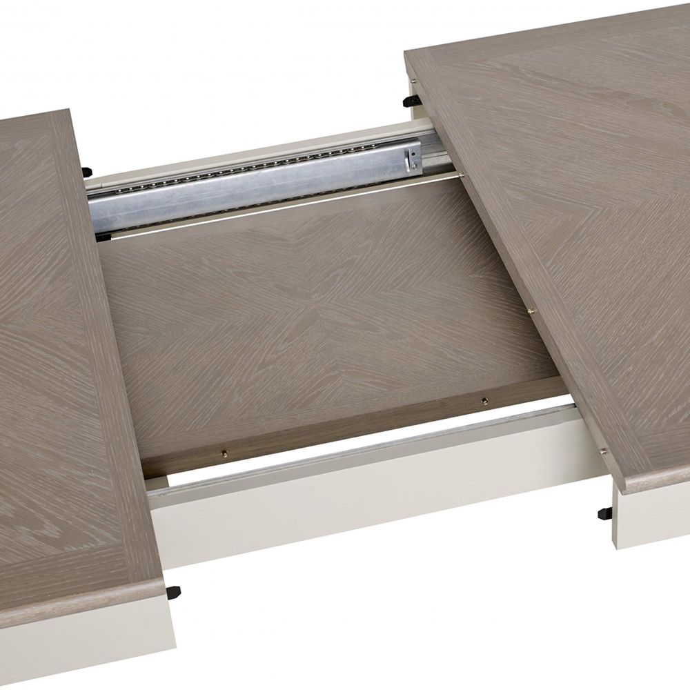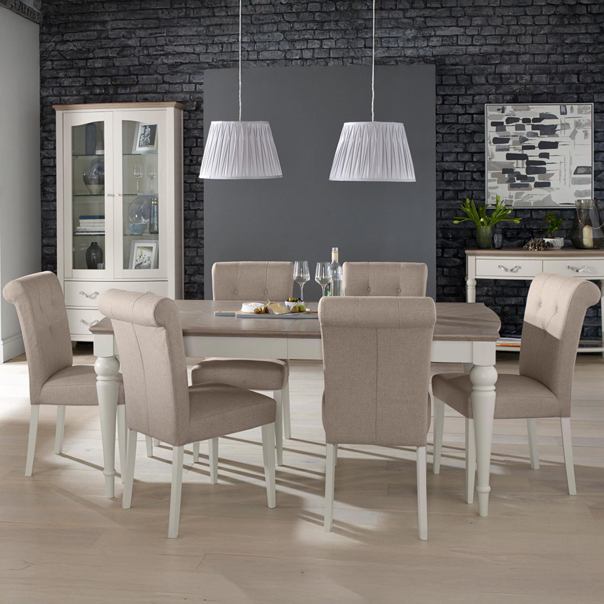 Montreux Extending Dining Table Set - 6-8 Seater - 180cm-225cm - 6 Upholstered Pebble Grey Fabric Chairs - Grey Washed Oak & Soft Grey