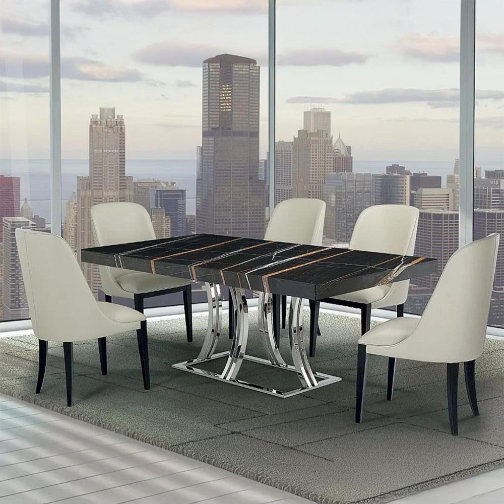 Aurora Dining Table - Marble with Stainless Steel Base - Variation Available