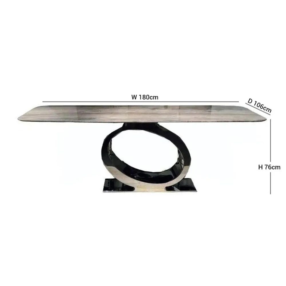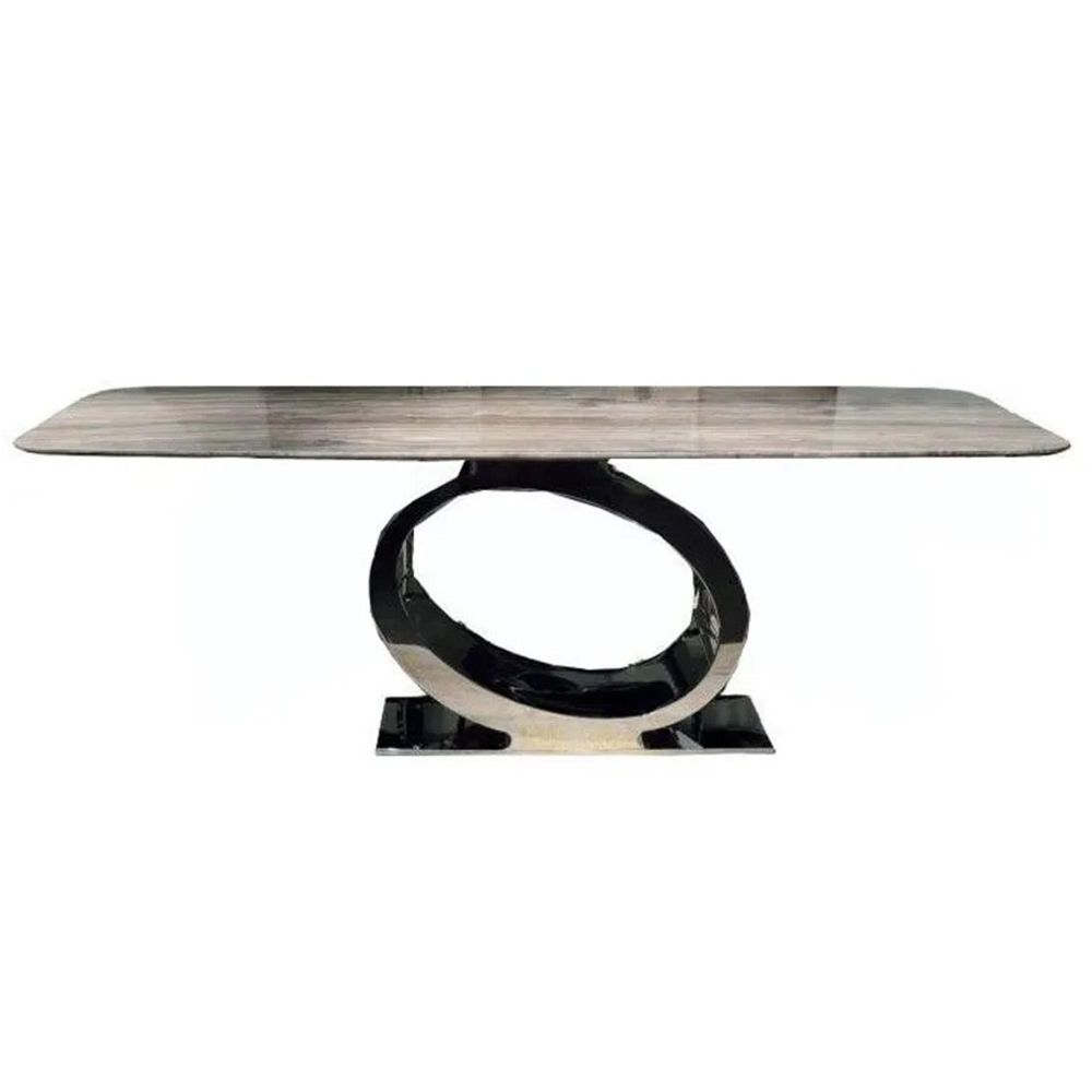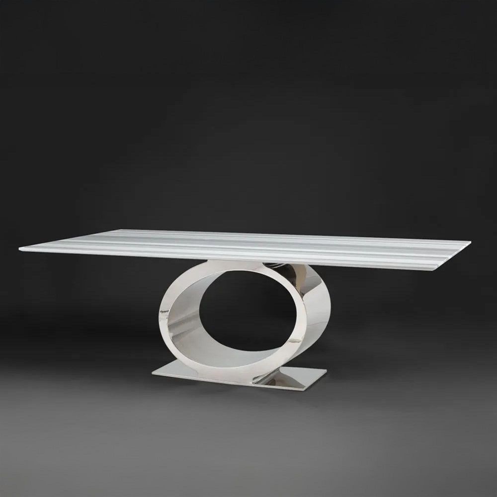 Eye Dining Table - Boxed Edge - Marble with Chrome Pedestal Base - Variation Available