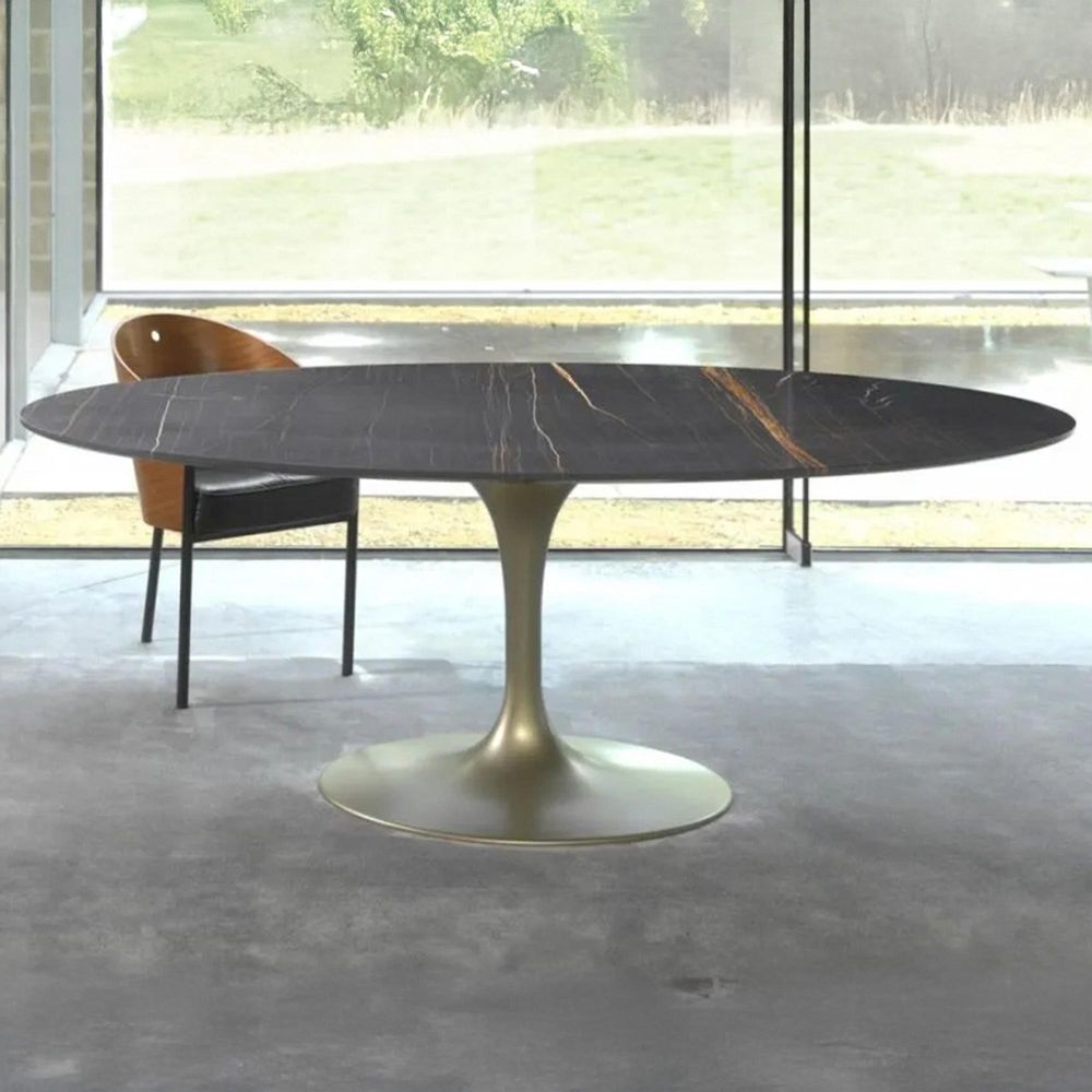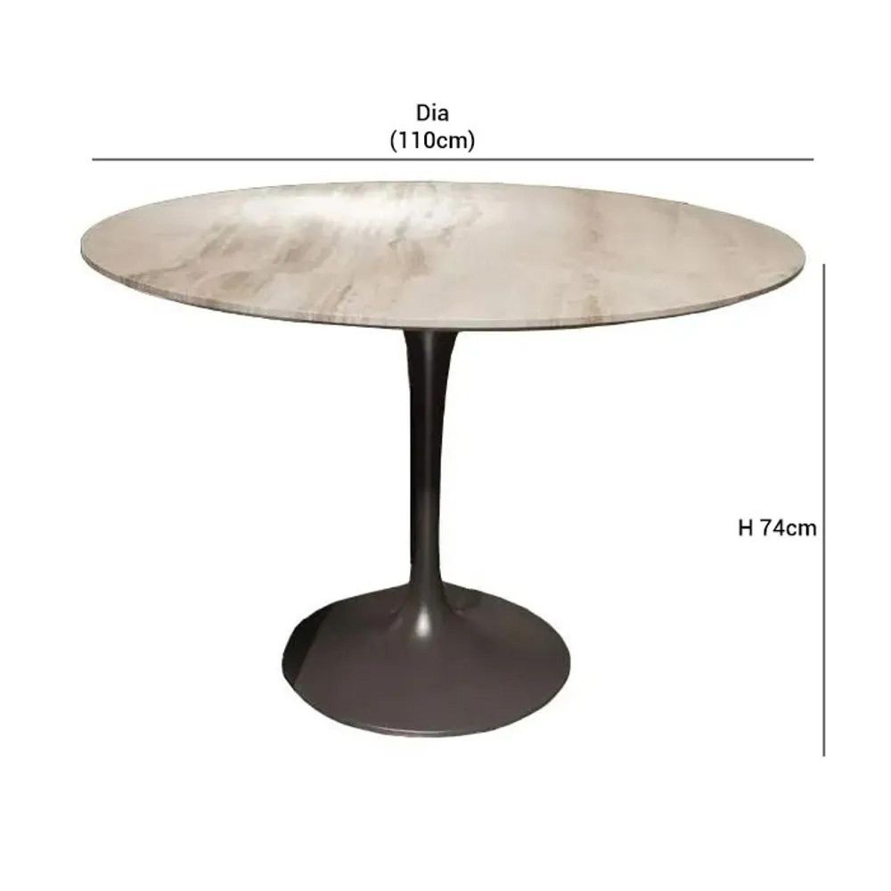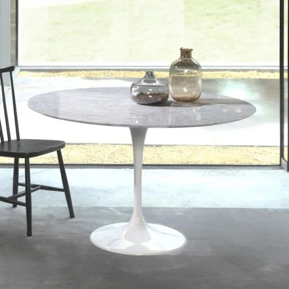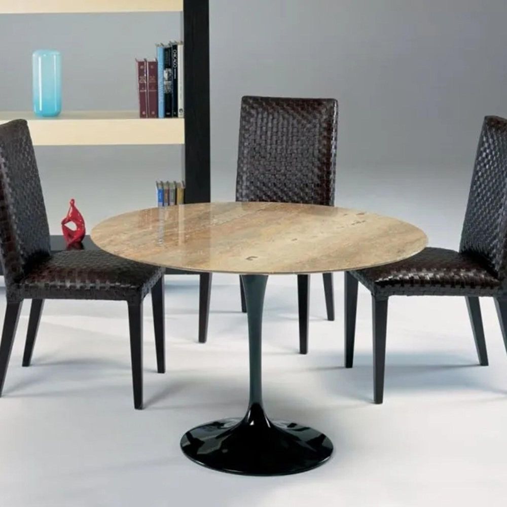 Flute Dining Table - Round - Marble with Metal Pedestal Base - Variation Available