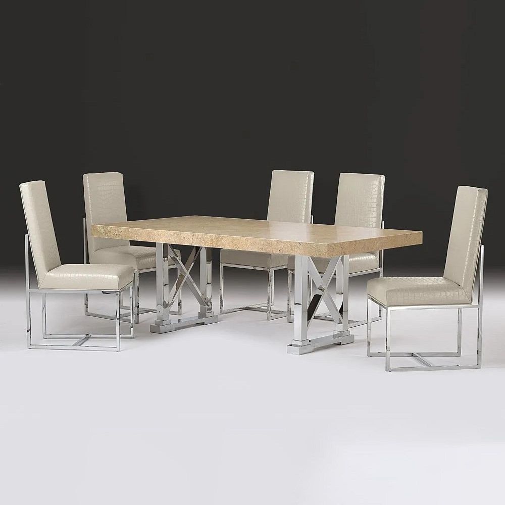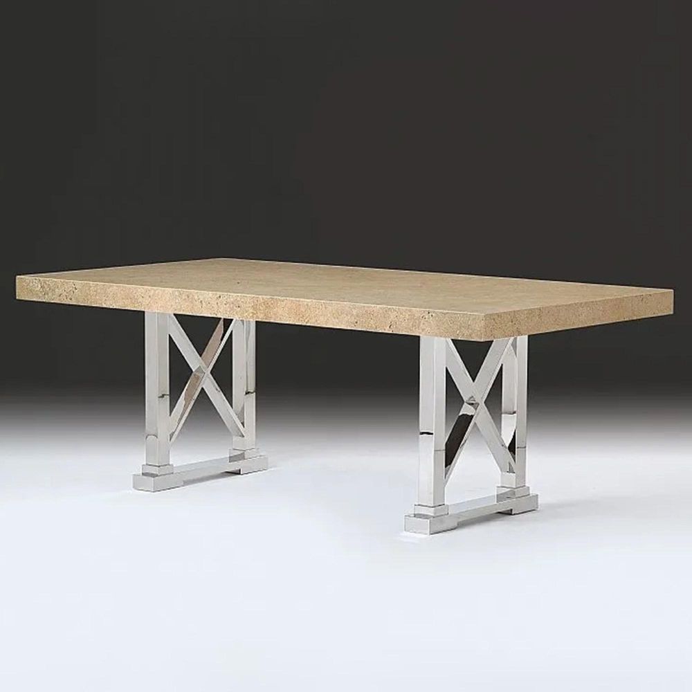 Impero Dining Table - Marble with Stainless Steel Pedestal Base - Variation Available