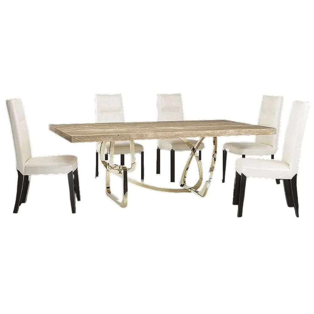 Tangle Dining Table - Boxed Edge - Marble with Stainless Steel Pedestal Base - Variation Available