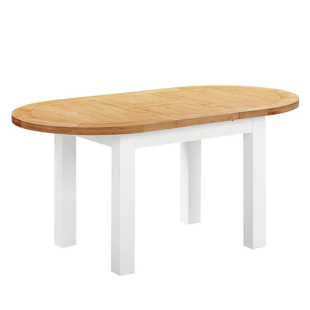 Blending timeless design with everyday practicality, the Lundy Oval Extending Dining Table is a versatile centrepiece for your dining space. With its soft white painted finish, gently curved D-end shape, and warm light oak lacquered top, this table brings a sense of calm, understated style to both classic and contemporary interiors.