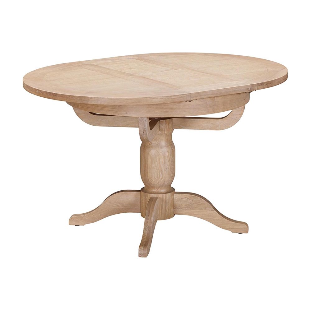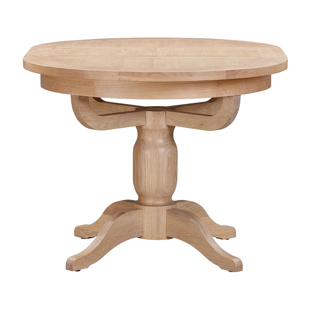 Finished in a pale white-wash tone, the wood’s natural grain is gently highlighted, bringing warmth and sophistication into your home. The round pedestal base provides a classic silhouette, while the extending feature makes it ideal for both everyday meals and gatherings with guests.