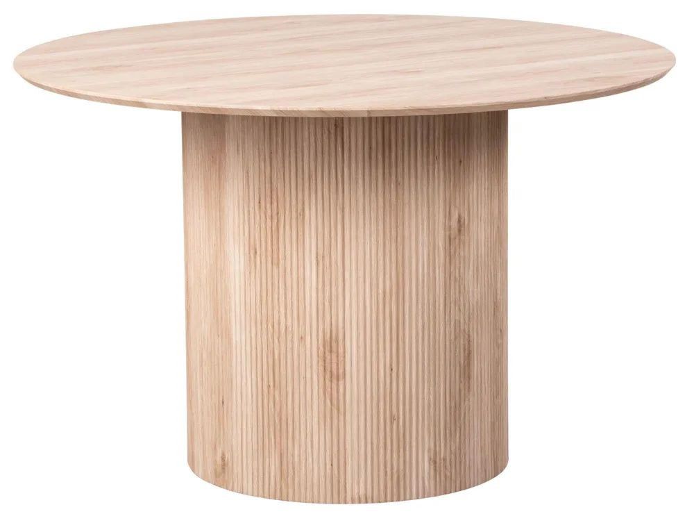 Bern Fluted 4 Seater Oak Effect Round Dining Table with Drum Base - 120cm