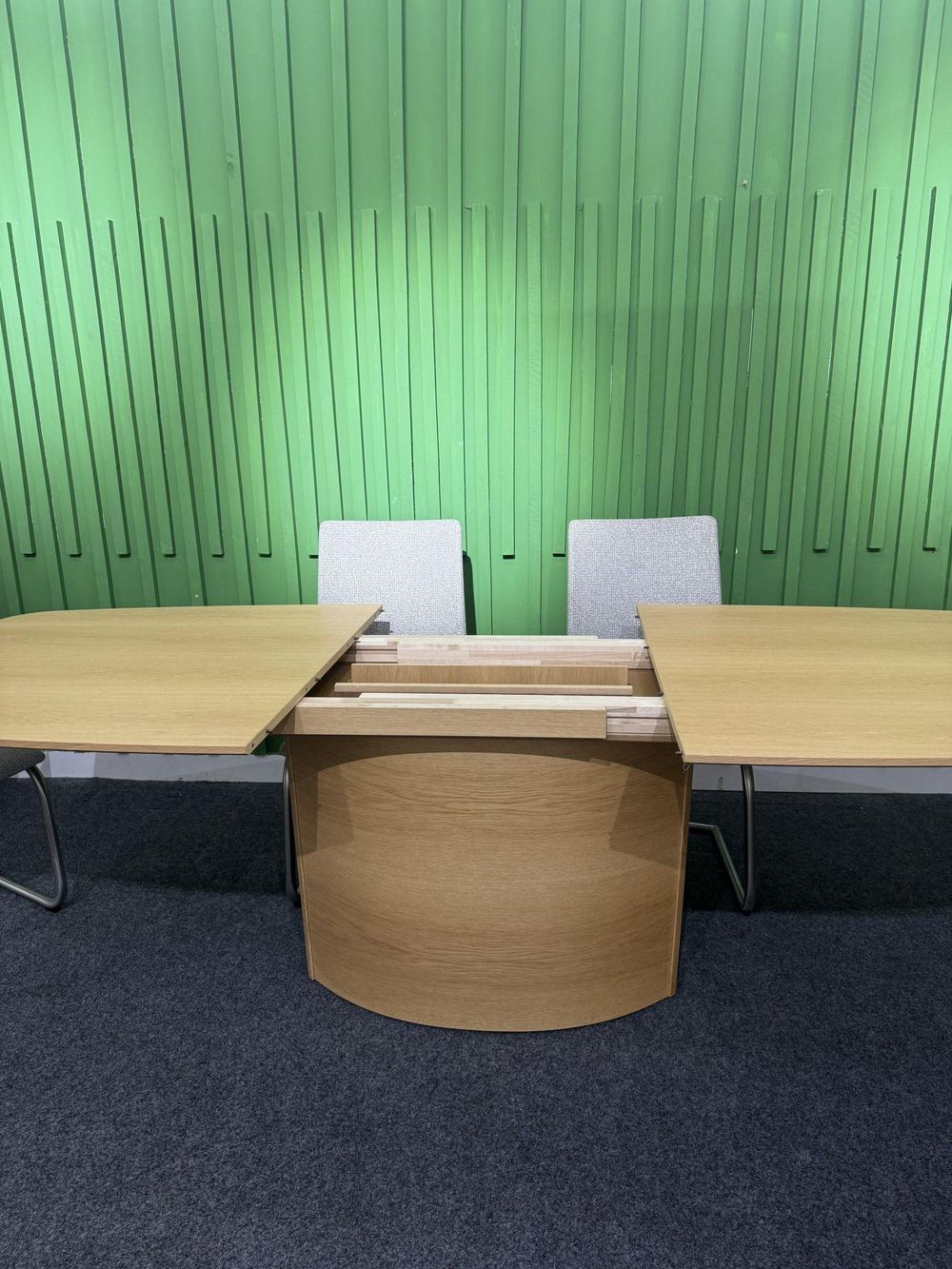 Item Code: SM116 Please note: Images are used for illustration purpose onlyItem looks as accurate as your browser allowedThis item is listed as ex-display and available on first come first serve basis once ordered can not be cancelled.Skovby SM116 Extendable dining table with pedestal baseDining table SM116 is a rectangular table model with rounded corners and a central pedestal base with a soft geometrical shape with edgy, wedge-shaped end pieces.The table is equipped with a patented, synchronous extension system. Pull apart the tabletop to reveal the extension leaf hidden in the base and apply light pressure to rise and unfold the leaf. 1 veneered folding leaf stored in base.Care and maintenanceImproper care and maintenance can damage your furniture!Far too many of the problems that arise with furniture, is a result of improper maintenance and/or as a result of an inaccurate or incomplete information when purchasing the furniture.Please follow the recommendations as to daily care and maintenance of your Skovby furniture in the attached leaflet.