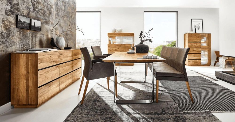 Item Code: FDTJ00001 Produced in Europe, this is an extensive collection of dining and living furniture, fusing the beauty and nature of wood and metal in a contemporary style. Table tops can be selected in either solid European oak or solid North American black walnut - with the option of straight or natural wavy edges for each. Personal preferences can be even further tailored with contrasted fillers for the rustic tops, or simply with open knots and cracks to further accentuate the hallmarks of these characterful timbers. Cutting edge finishes in oiled and lacquered compositions help to offer durability and pleasing patina.