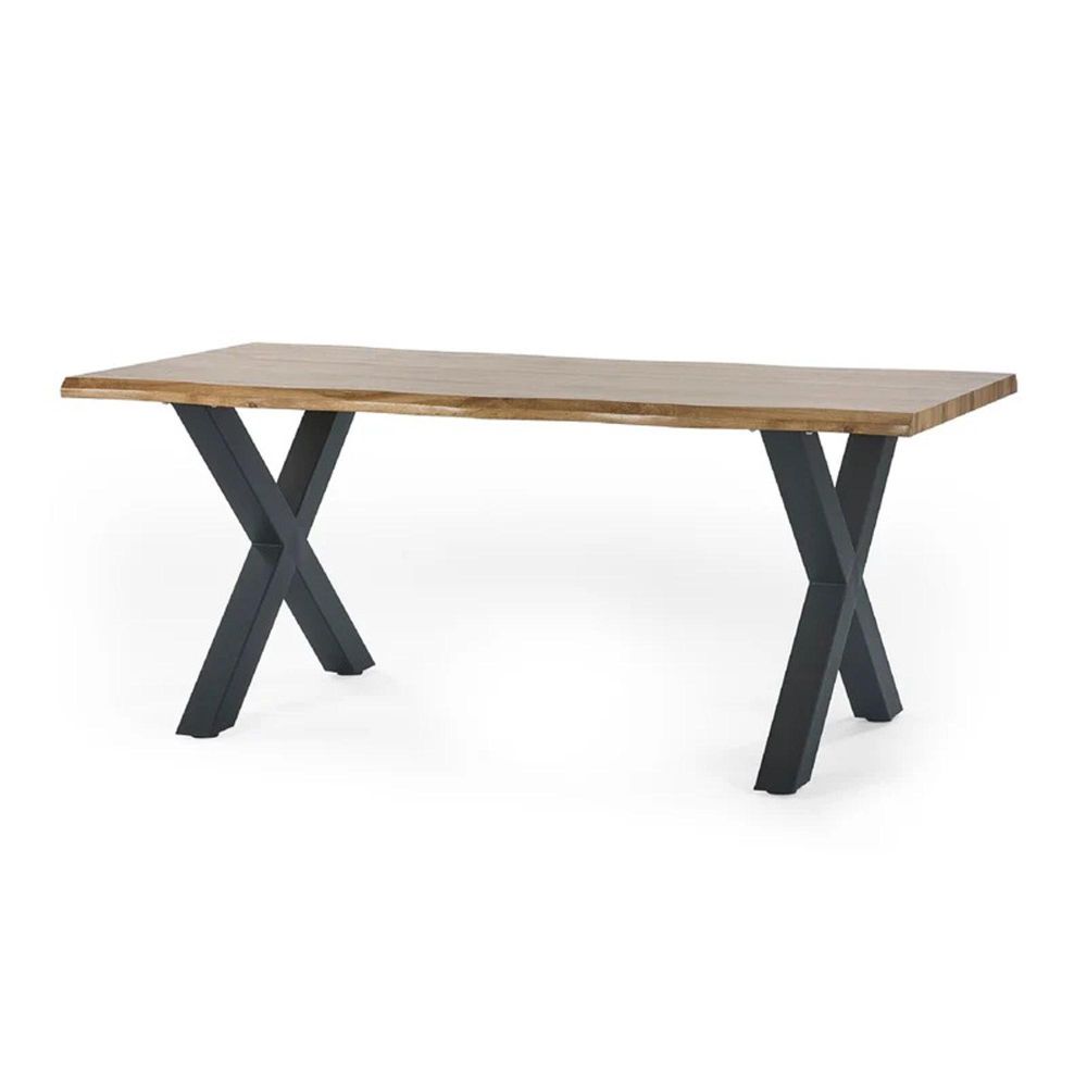 Item Code: HAR003 Redefine your dining area with the Harvey Dining Table, where style meets functionality. The oak-effect top, with its elegant waved edge, adds a distinctive charm, complemented by the robust matt black steel crossed legs for a bold, contemporary finish. Ideal for everyday meals or hosting gatherings, this table combines timeless design with practicality to enhance any dining space. Simple assembly is required, so you can have it ready to use quickly and effortlessly.