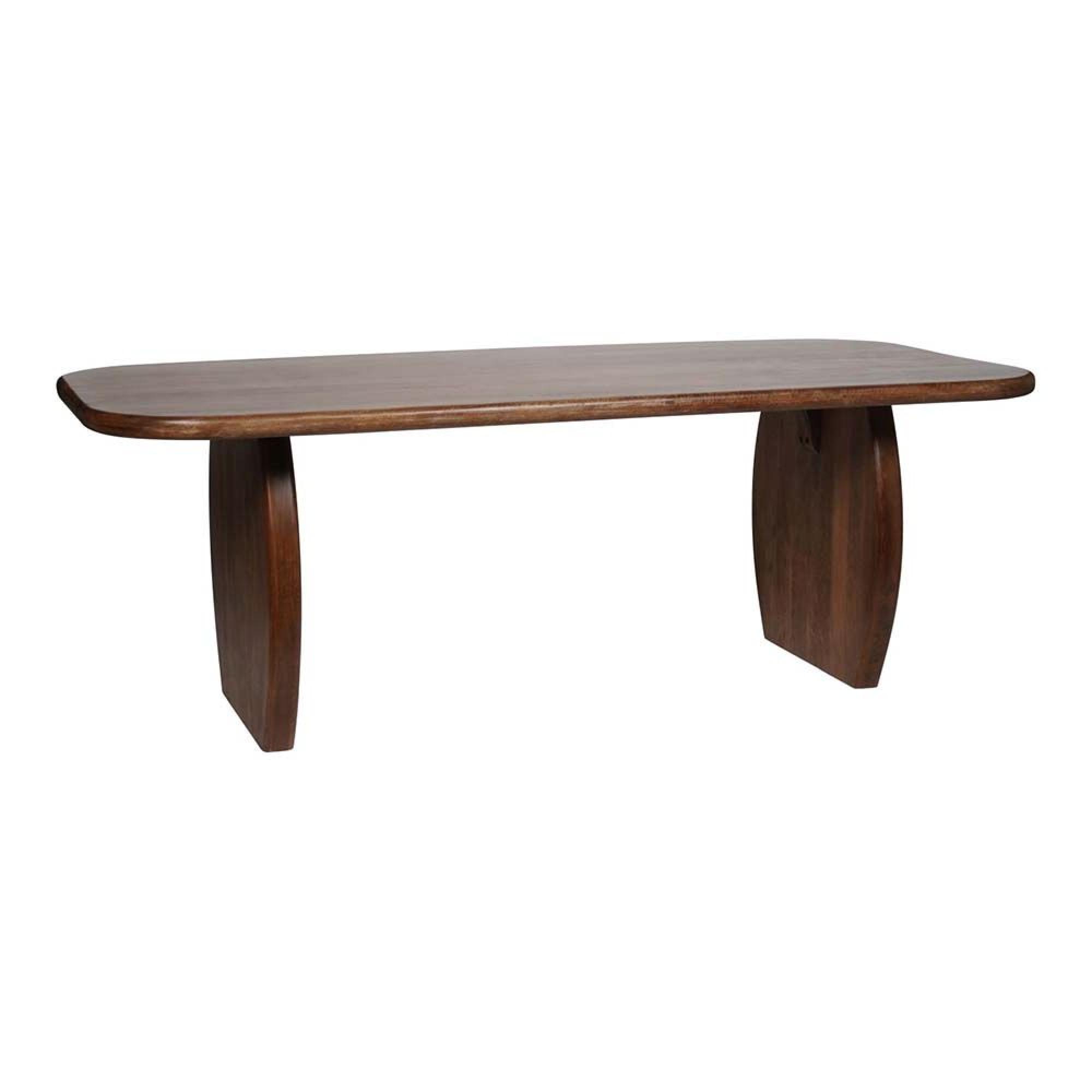 Item Code: 706194 The Monterey Dining Table is a beautifully crafted and substantial dining masterpiece, made from solid mango wood that highlights the natural richness of the material, finished in a dark wood stain. Two solid, elegantly curved legs complement the softly rounded edges of the tabletop, whilst the sturdy construction ensures lasting durability. The smooth, polished surface showcases the unique grain of the wood, adding warmth and character to any dining space. Generously sized at 220 cm in length and 76 cm in height, this table provides ample space for gatherings and family meals and seats 8 people. The table requires simple self assembly as the legs and top come apart.