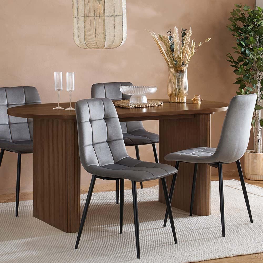 Axel Oval Dining Table - 6 Seater - 160cm - Walnut Fluted