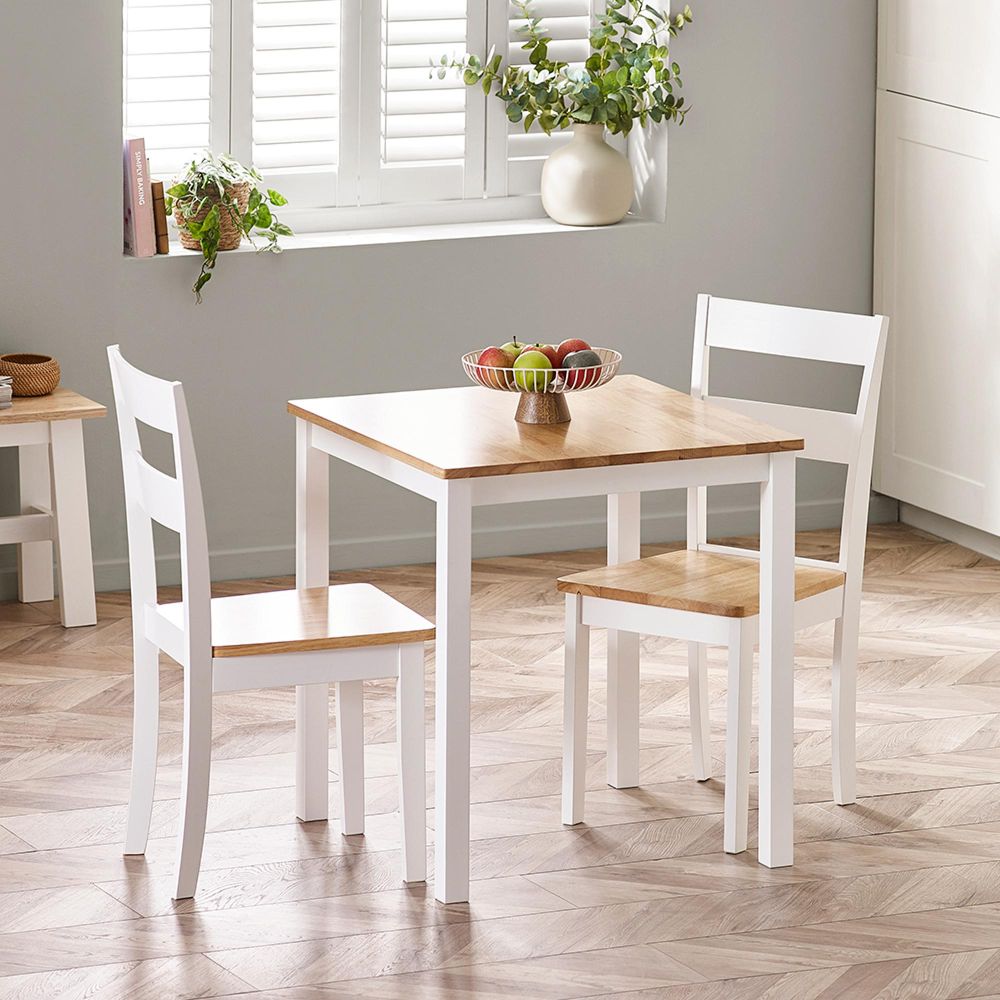 Item Code: LIN005 Bring timeless charm and practical style into your dining room or kitchen with this beautifully crafted square dining table. Featuring a natural light oak effect tabletop paired with fresh white legs, it offers a warm, classic look that complements both modern and traditional interiors. Compact in size yet sturdy in design, it's ideal for smaller spaces while providing ample room for everyday meals or casual gatherings. Built from durable materials to withstand regular use while maintaining its elegant appeal. Minimal assembly required. Chairs sold separately.