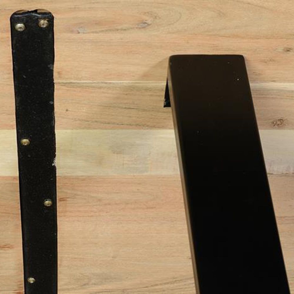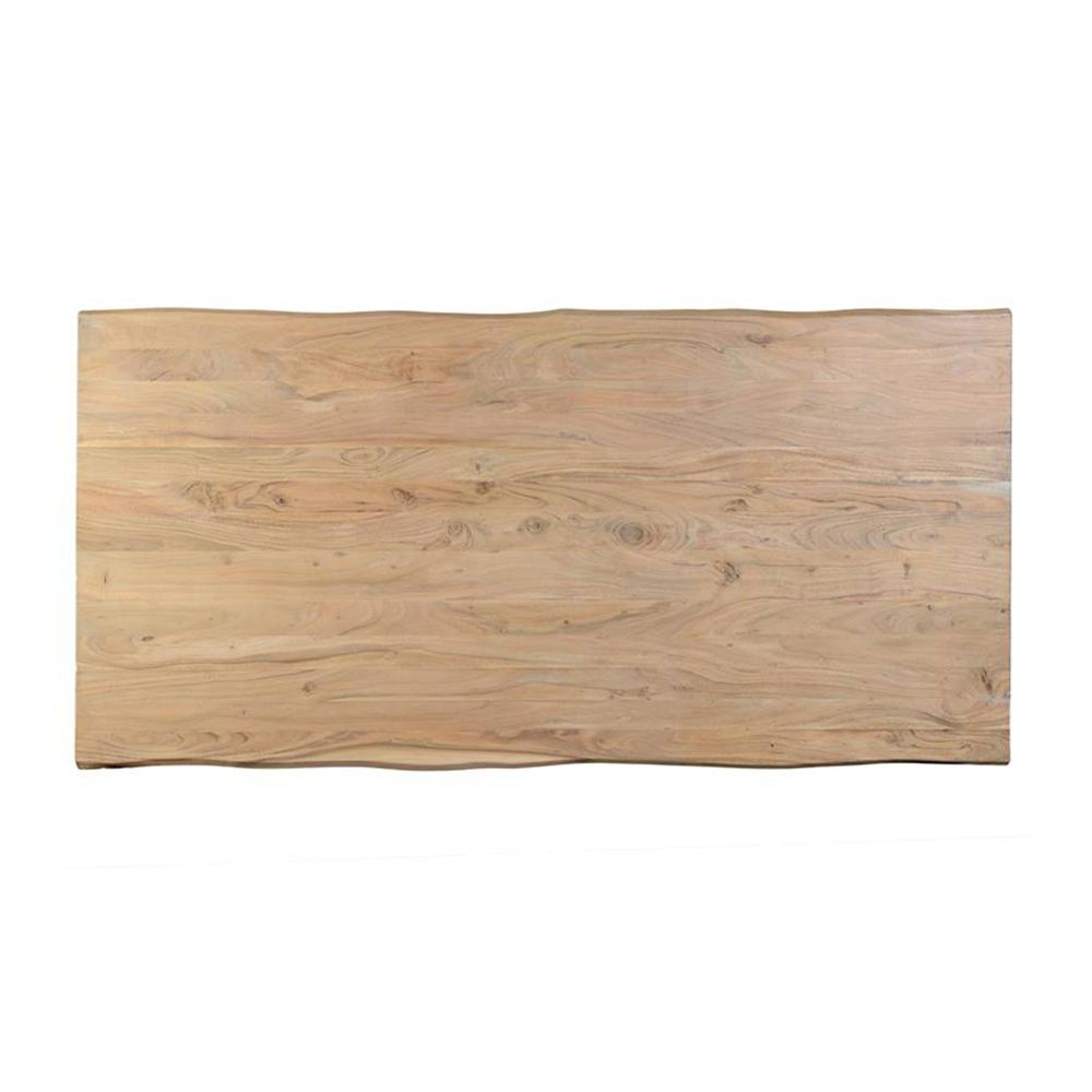 DINING TABLE WITH SOLID ACACIA Wood TOP AND IRON Legs. LEG MEASUREMENTS: 74CM HIGH X 7.5CM WIDTH X 2.5CM DEPTH. LEG THICKNESS: 2.6CM. PRODUCT DELIVERED DISASSEMBLED. INCLUDES ASSEMBLY TOOLS.