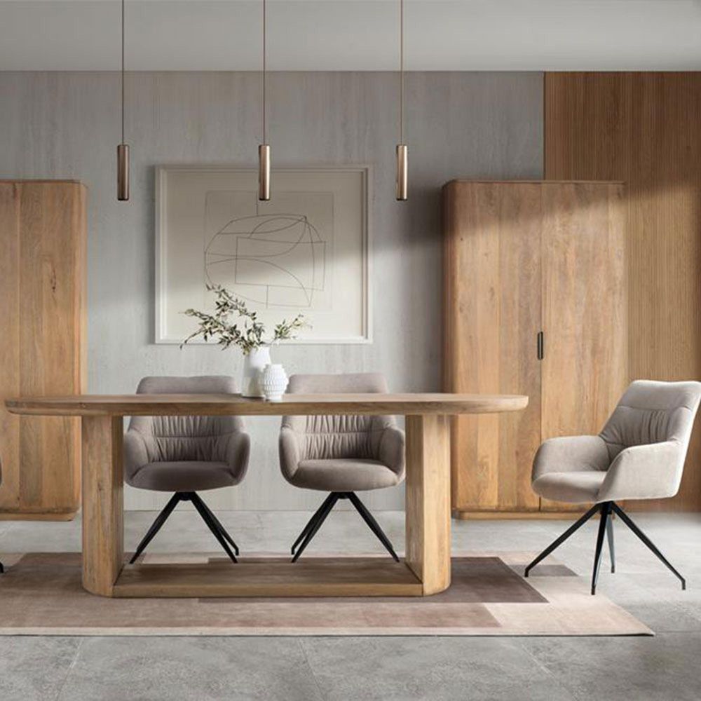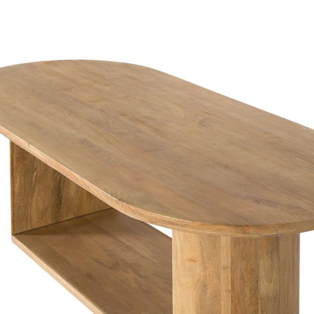 Item Code: 1935 This Oval Table Is Made Of Mango Wood With A Natural Finish That Highlights The Unique Beauty Of The Wood. The Top Has A Molded Edge, Giving It A Refined And Elegant Touch. The Base Is Open, Providing An Airy And Light Design, But Features Two Imposing Sides That, With Their Thickness And Solidity, Provide Stability And Sturdiness. These Sides Firmly Structure The Base, Creating A Functional And Stylish Table.