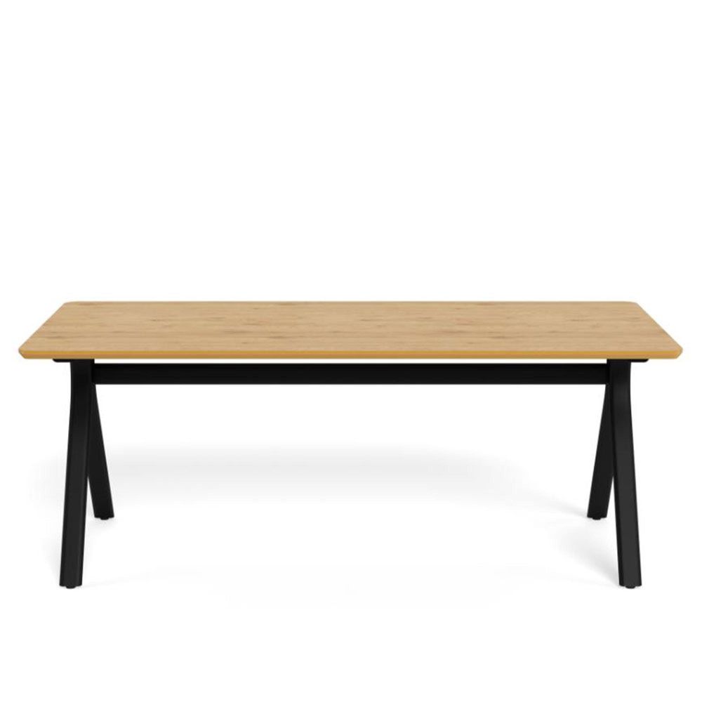 Bristol rectangular dining table, top matt wild oak rough melamine, base matt black rough powder coated steel, 200x100x75 cmBe it on special days or all the other days, this rectangular dining table can gather your nearest and dearest together without a difference. With its matt oak melamine easy care surface and black powder coated steel base, the table fosters a sense of togetherness in the dining area on all occasions.