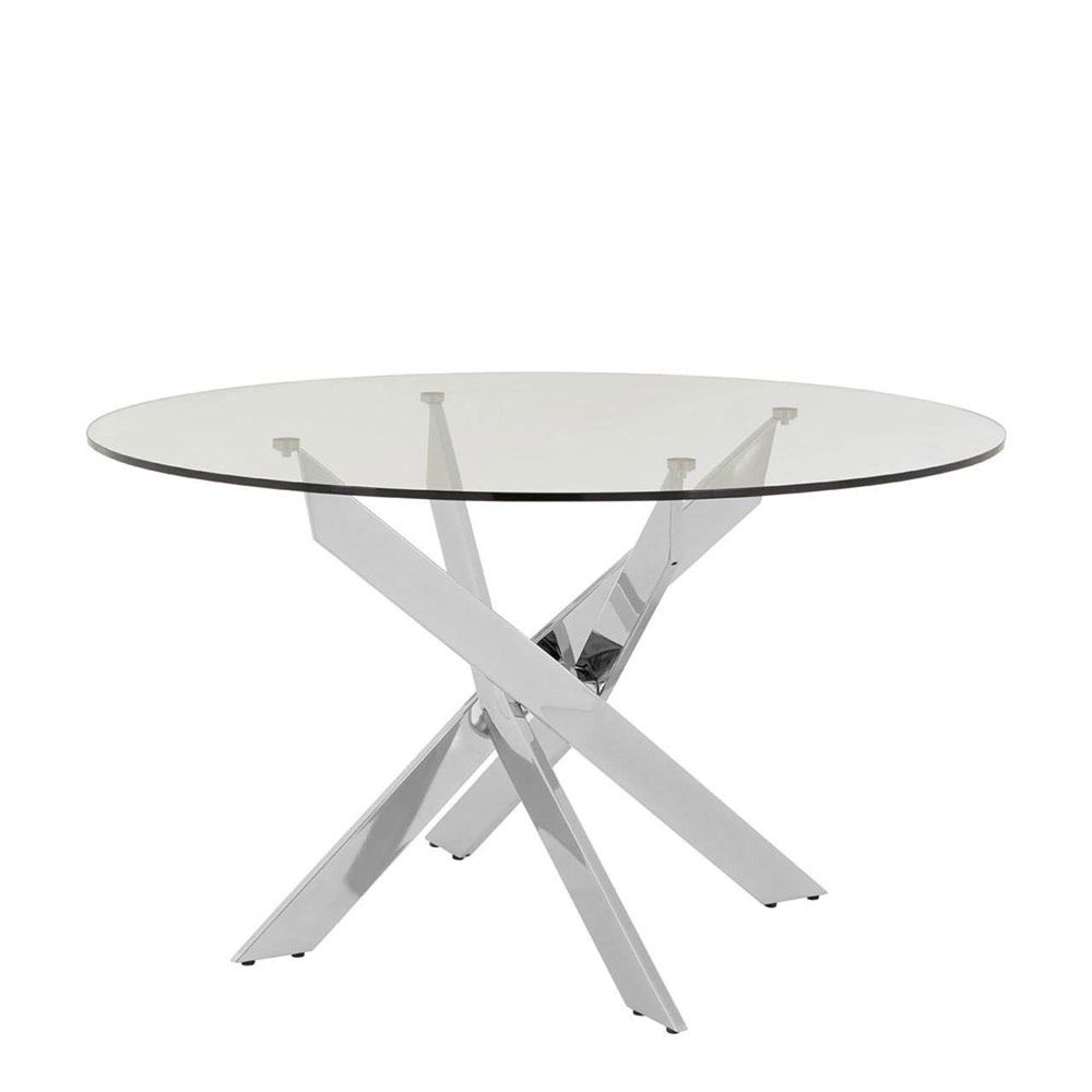 Allure Round Dining Table - 4 Seater - 130cm - Chrome Glass- Intersected Legs