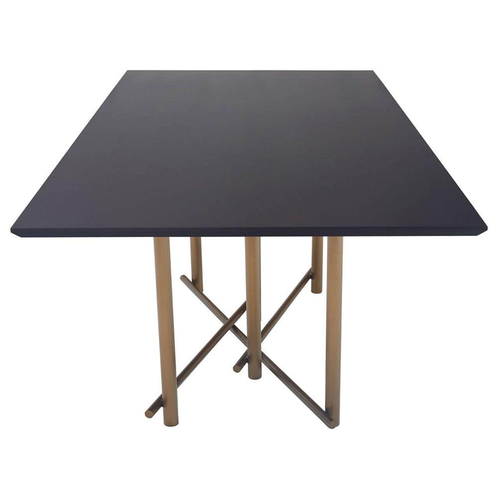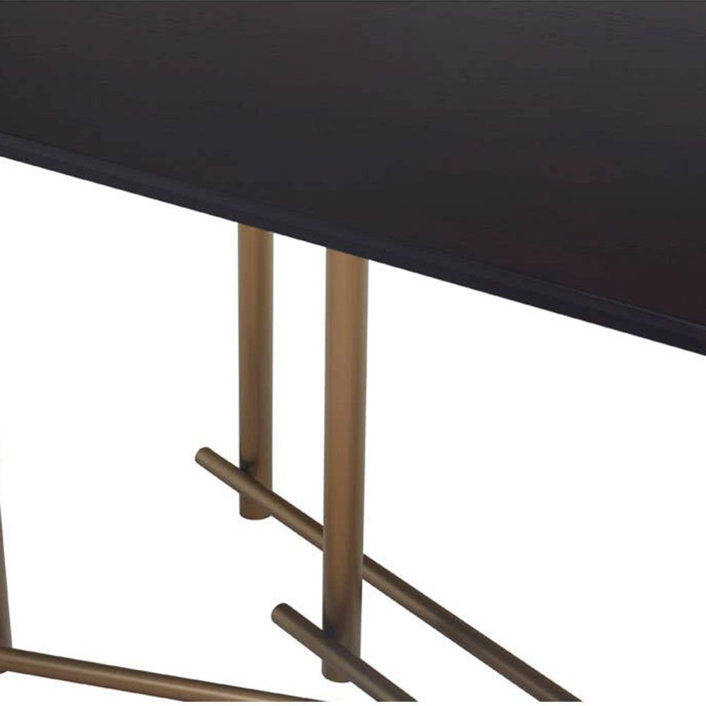 Item Code: 5527240 The Delta dining table will be a modern, stylish and practical addition to any dining room.This minimalistic style dining table has strong, dark wooden finish tabletop sits upon brushed brass finish legs, inter-connected at the base to form a geometric design. This dining table comfortably sits six guests.